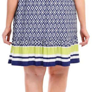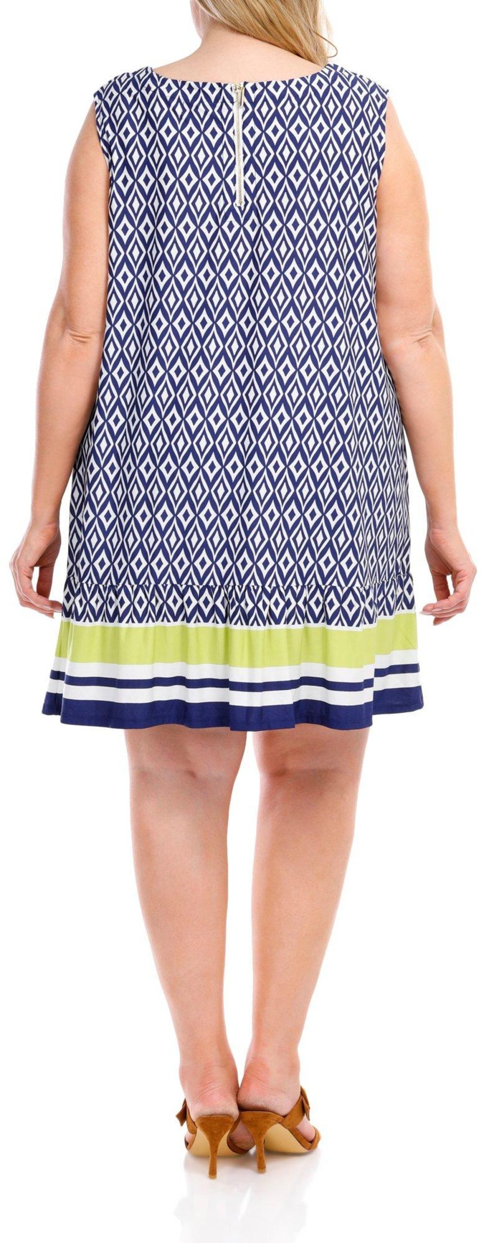 Introducing the Plus Sleeveless Geo Swing Dress, a chic and comfortable addition to your wardrobe. Made from a blend of polyester and spandex, this dress features a stylish diamond print that adds a modern touch. The back zip entry ensures easy wear, while the sleeveless design and round neckline offer a flattering and airy feel. Perfect for both casual and semi-formal occasions, this dress combines elegance with everyday practicality. Elevate your style with this versatile piece.