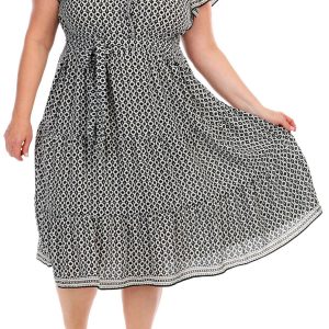 Introducing the Plus Sleeveless Geo Swing Dress, a chic and comfortable addition to your wardrobe. Made from a blend of polyester and spandex, this dress features a stylish diamond print that adds a modern touch. The back zip entry ensures easy wear, while the sleeveless design and round neckline offer a flattering and airy feel. Perfect for both casual and semi-formal occasions, this dress combines elegance with everyday practicality. Elevate your style with this versatile piece.
