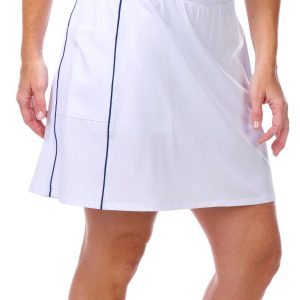 Elevate your game with the Women’s Active Golf Skort, featuring a sleek solid color with piping detail. Built-in shorts with side seam pockets offer coverage and convenience, while outer skirt pockets add extra utility. Made with performance stretch fabric for all-day comfort and mobility. Fabrication 90% polyester, 10% spandex