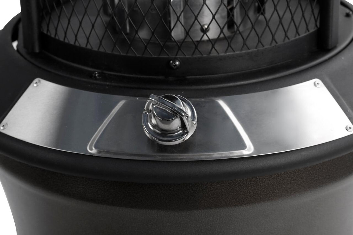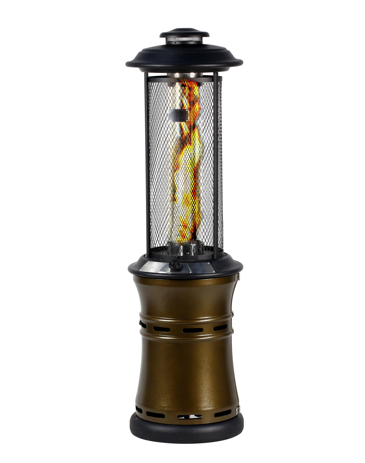 Enhance your outdoor comfort with the Heat Maxx Collapsible 71 in. Patio Heater. This unique heater features a collapsible design for compact storage when the propane tank is removed. The patented Spiral Flame emitter creates a mesmerizing dancing flame effect in a Borosilicate glass tube. The electronic push/turn ignition (batteries not included) ensures easy operation. The weighted base offers stability. CSA Certified for safety. Measures 20.3 in. diameter x 71 in. H.