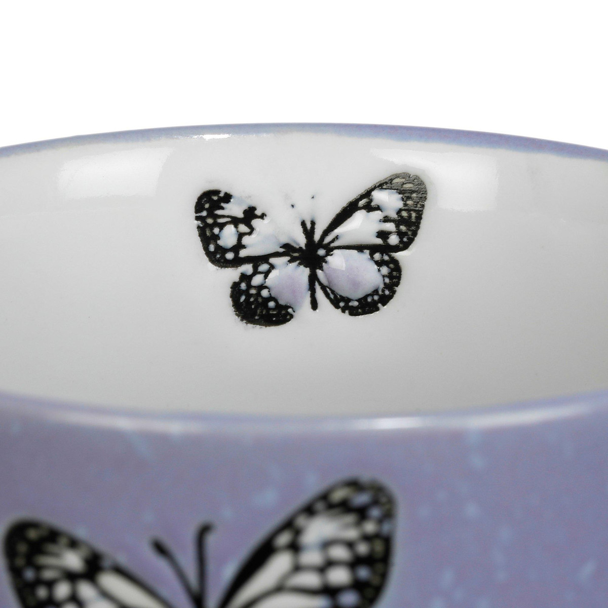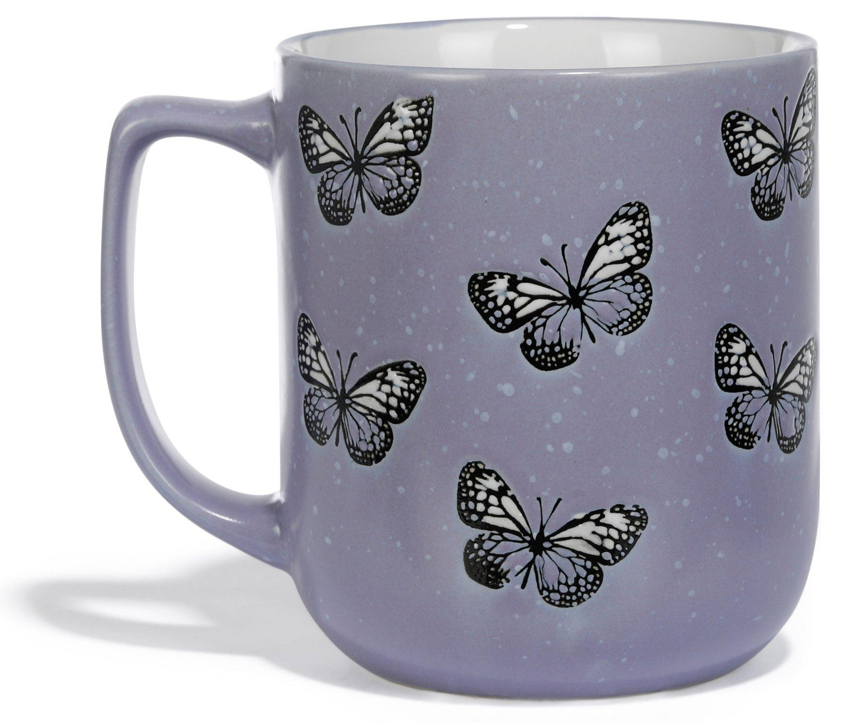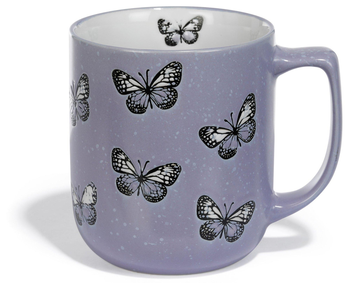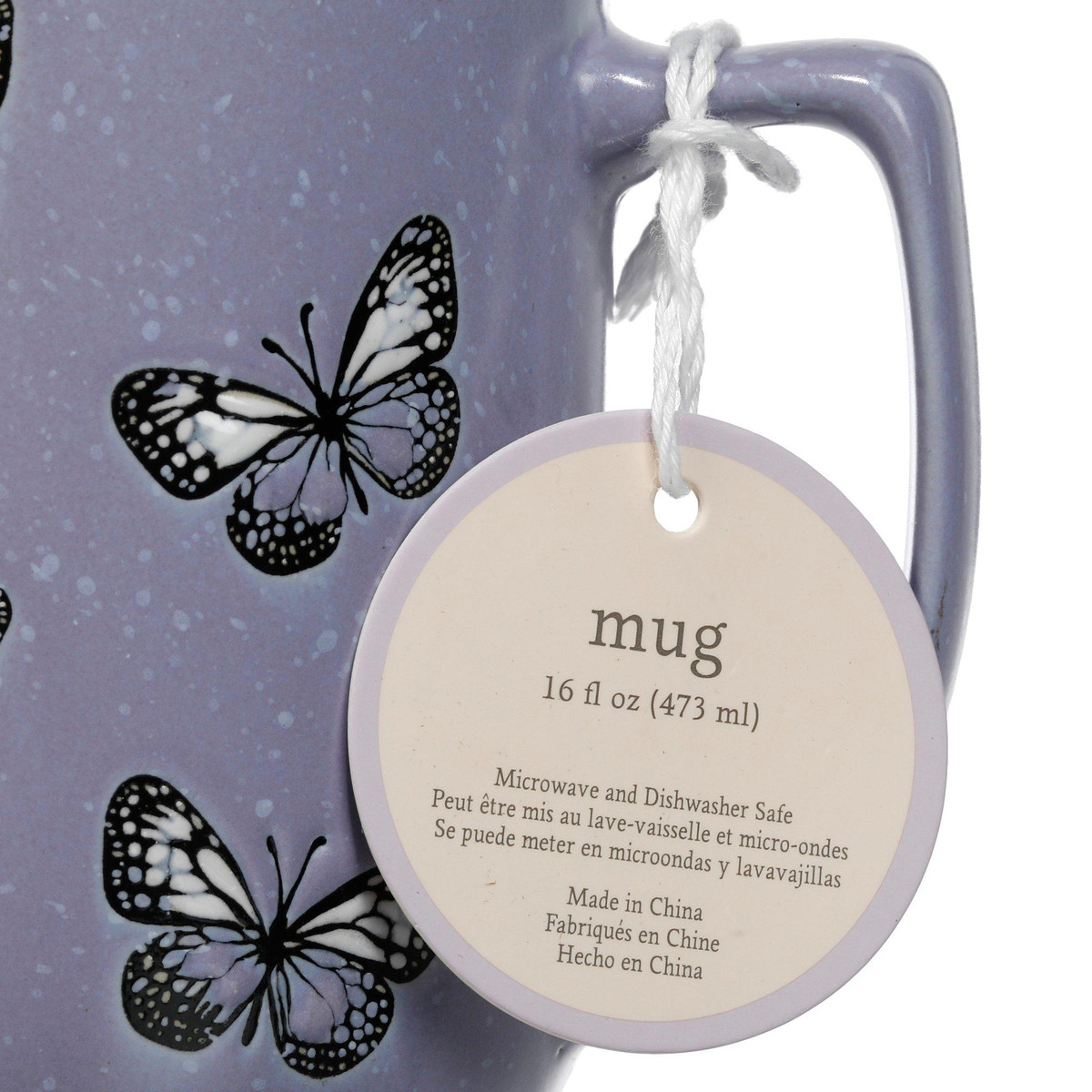 Savor your favorite hot or cold beverages with ease using this 16 Oz Butterflies on Lilac Speckled Mug. Featuring a charming butterfly pattern, this ceramic mug adds a playful yet stylish touch to your drinkware collection. Its sturdy handle offers a comfortable grip, making it ideal for everyday use at home or the office. Perfect for coffee, tea, or iced drinks, this mug combines function with cheerful design. Mug cup itself holds 16 oz and measures approximately 4.5 in x 3.5 in.