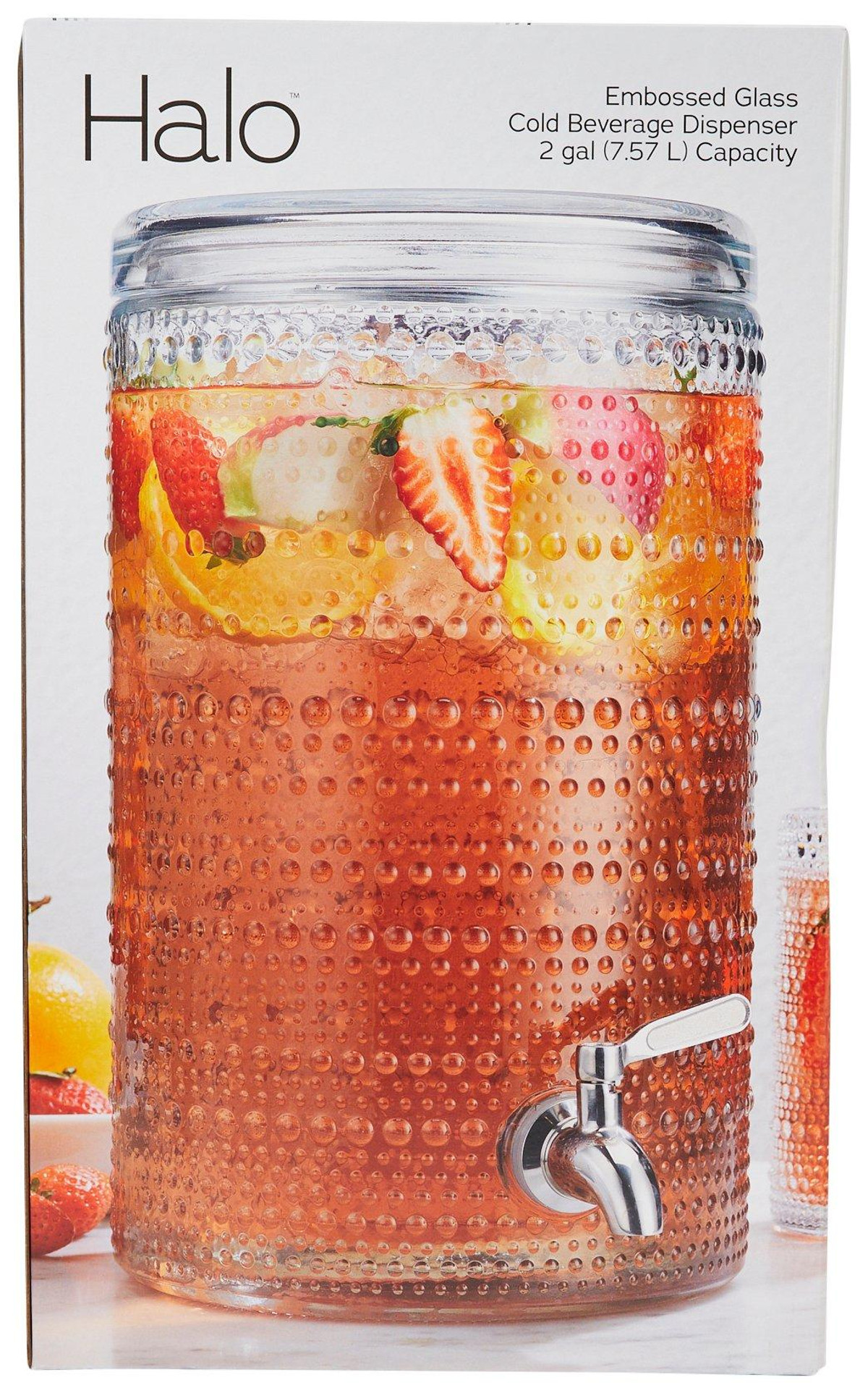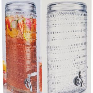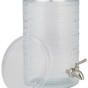 Keep guests refreshed and style on point with this 2 gallon cold beverage dispenser made of embossed dots glass. Perfect for family parties, outdoor gatherings, and infused water at home, it adds charm to any event. A go-to drink station for entertaining, it serves lemonade, iced tea, or fruit water with ease. Durable, functional, and display-worthythis dispenser makes every sip a centerpiece.