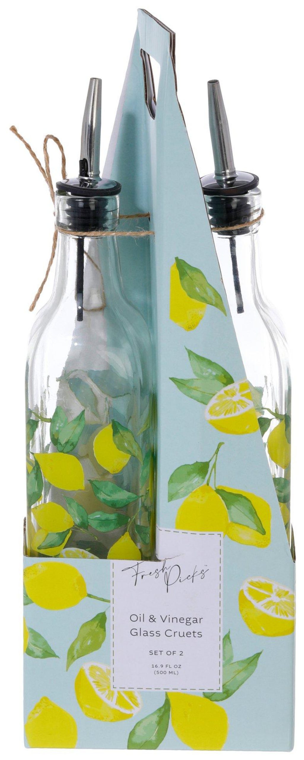 Home essentials 2 Pc Glass Oil & Vinegar Bottle Set
