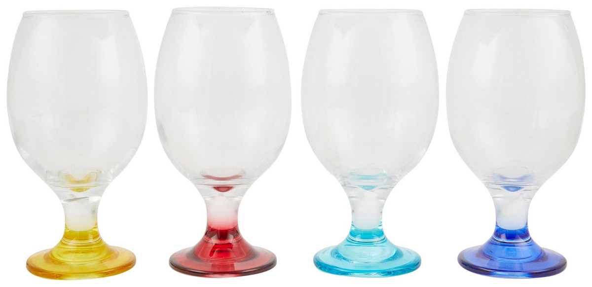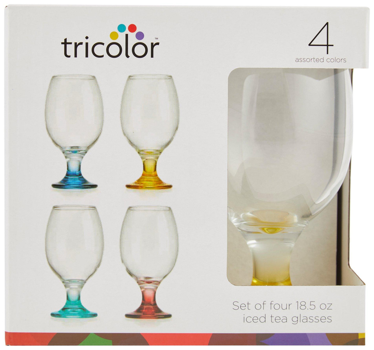 Serve in style with this set of 4 iced tea glasses, thoughtfully designed with the elegance of oversized wine goblets. Each 18.5 oz glass features its own distinct base colormaking it easy for guests to identify their drink. Perfect for entertaining, these glasses offer both beauty and practicality. Made from durable glass with hand washing recommended, they bring a splash of personality to every gathering.