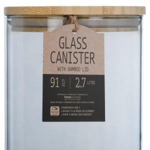 Home Essentials 91 Oz Blue Glass Bamboo Top Canister