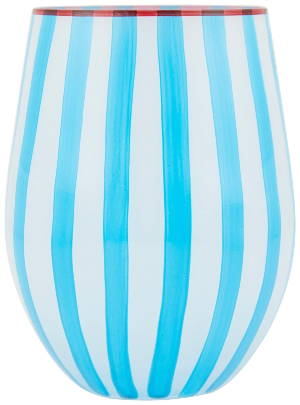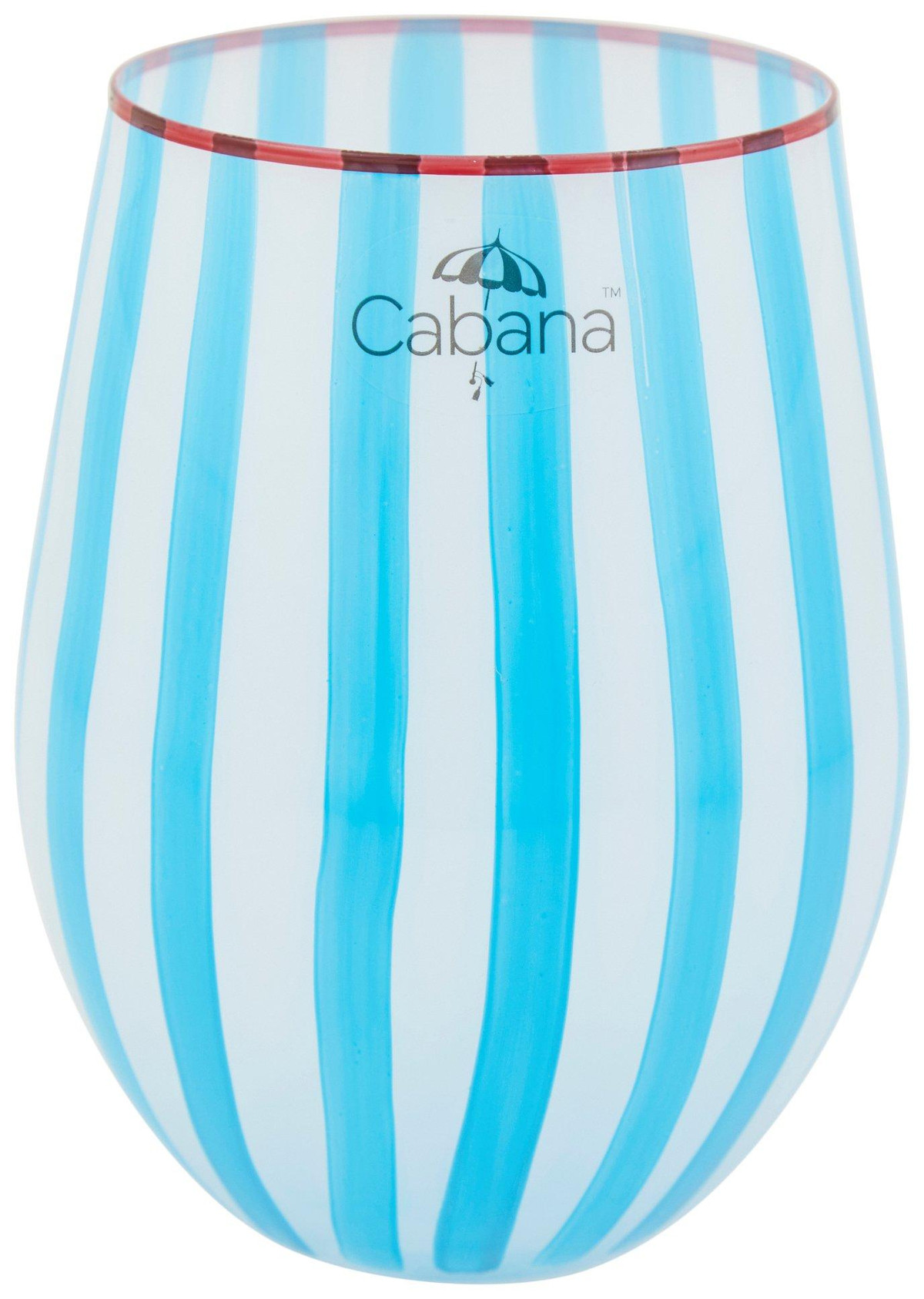 Cabana Stemless Wine Glass brings a beautiful coastal look to your drinkware collection with its blue and white striped design. Crafted for both style and durability, this glass is perfect for enjoying wine or cocktails while adding a seaside charm to your table setting.