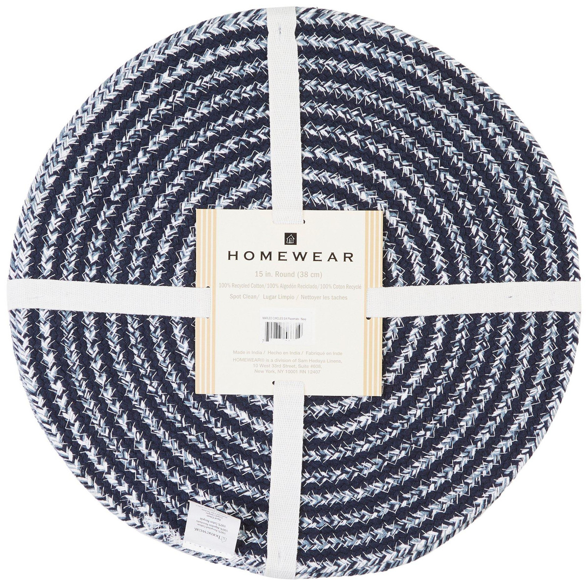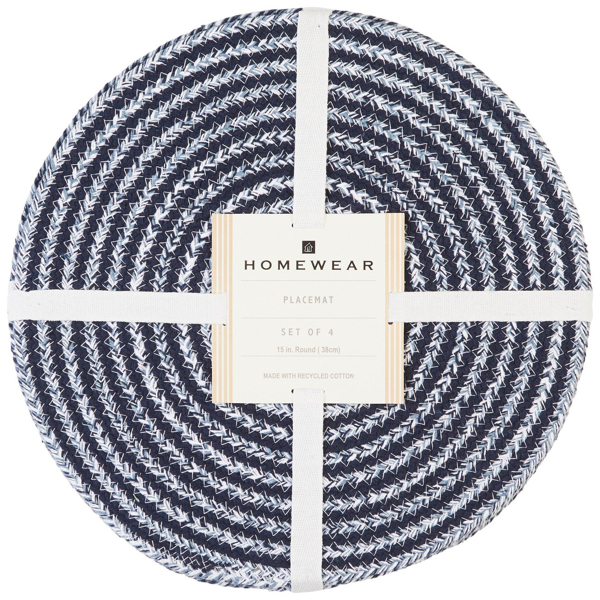 Elevate your table setting with this round set of four placemats crafted from 100% recycled cotton. The deep navy blue tone adds classic charm while promoting eco-friendly living. Durable and stylish, these mats bring texture and sustainability to everyday meals or festive gatherings.
