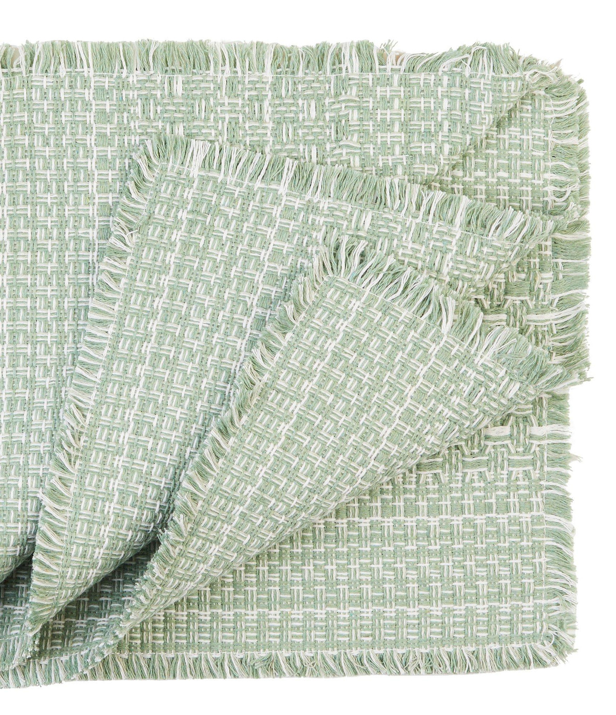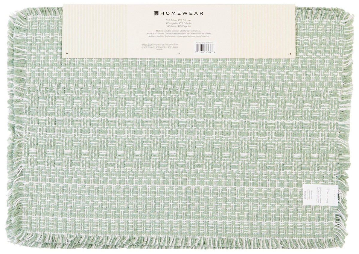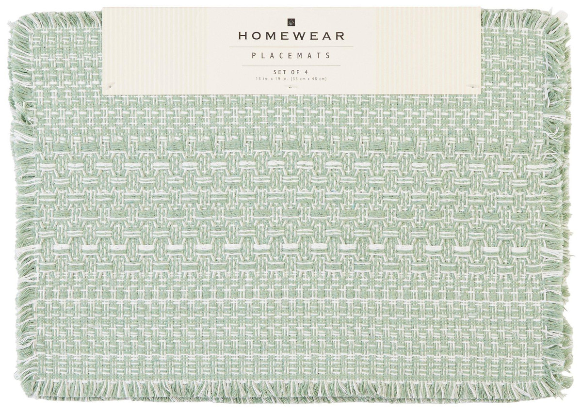 Add subtle elegance to your table with this set of 4 placemats in a soothing sage color. Each mat measures 13 by 19 inches and is crafted from a blend of 100% cotton and polyester, offering durability with a soft texture. Perfect for daily meals or special occasions, they bring a refined touch to any dining space.