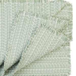 Add coastal decor style to your table with a 4-pack of rectangular placemats featuring a seafloor design. Crafted from 100% polyester, they blend seaside charm with everyday function. Perfect for casual dining or relaxed entertaining, these placemats are durable, easy to clean, and built to last. Fabrication is 100% polyester. Measures approximately 13 in x 19 in.