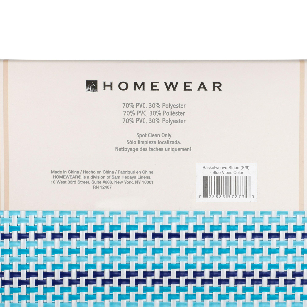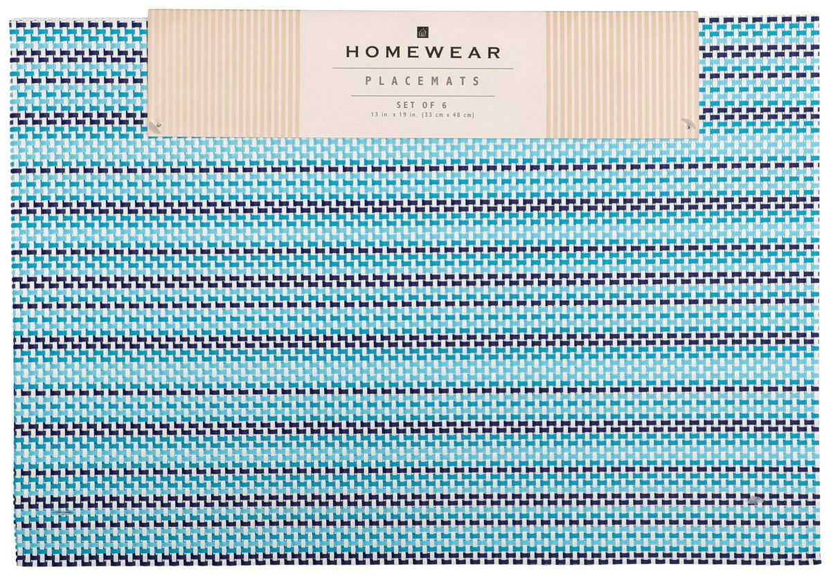 Add modern style to your table with a 6-pack of rectangular placemats featuring a classic striped pattern. Made from a durable PVC and polyester blend, they offer both function and design. Perfect for everyday dining or casual entertaining, these placemats are easy to clean and built to last. Fabrication is 70% PVC, 30% polyester. Measures 13 in x 19 in.