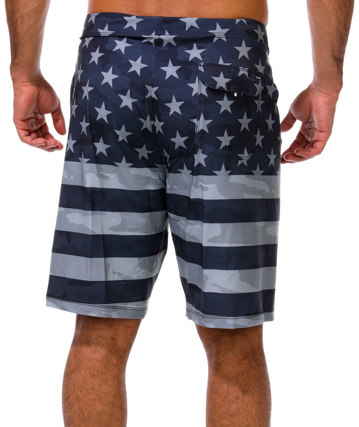 Show off your patriotic style with the Men’s Phantom Flag Print Swim Shorts. Featuring a bold flag print, adjustable drawstring waistband, and a handy back pocket, these swim shorts are perfect for pool days, beach outings, or summer celebrations. Fabrication 86% polyester, 14% spandex