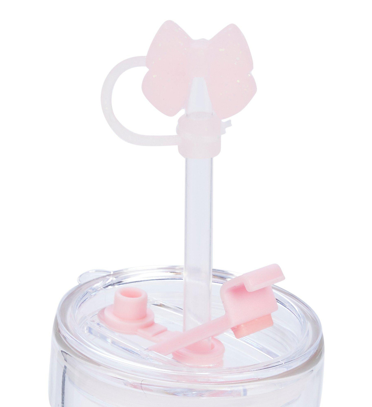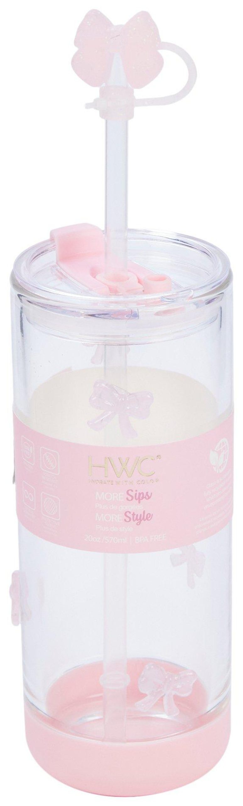 Sip in style with this 20 oz Glass Bow Tumbler! Featuring a matching straw and adorable bow-shaped topper, it is designed with scratch resistance, a BPA-free build, and a protective sleeve for on-the-go ease. Perfect for adding charm to your daily hydration!