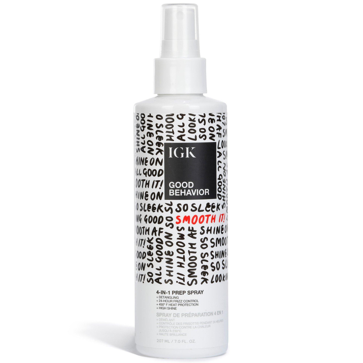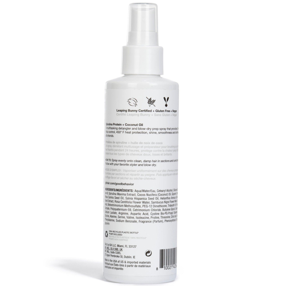 Smooth and protect hair from heat and humidity with Good Behavior 4-in-1 Prep Spray. This lightweight formula tames frizz, nourishes strands, and primes hair for styling or refreshes between washes. Perfect for all hair types, it delivers manageable, polished locks with lasting shine and softness. Contains 7 fl oz.