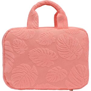 A 3-piece cosmetic bag set. The set includes one large, clear PVC bag with black trim and a daisy print, and two smaller black faux leather bags. The clear bag features a zippered closure and a top handle, while the smaller bags also have zippered closures. This set is great for organizing and storing makeup, toiletries, and other small personal items, ideal for traveling.