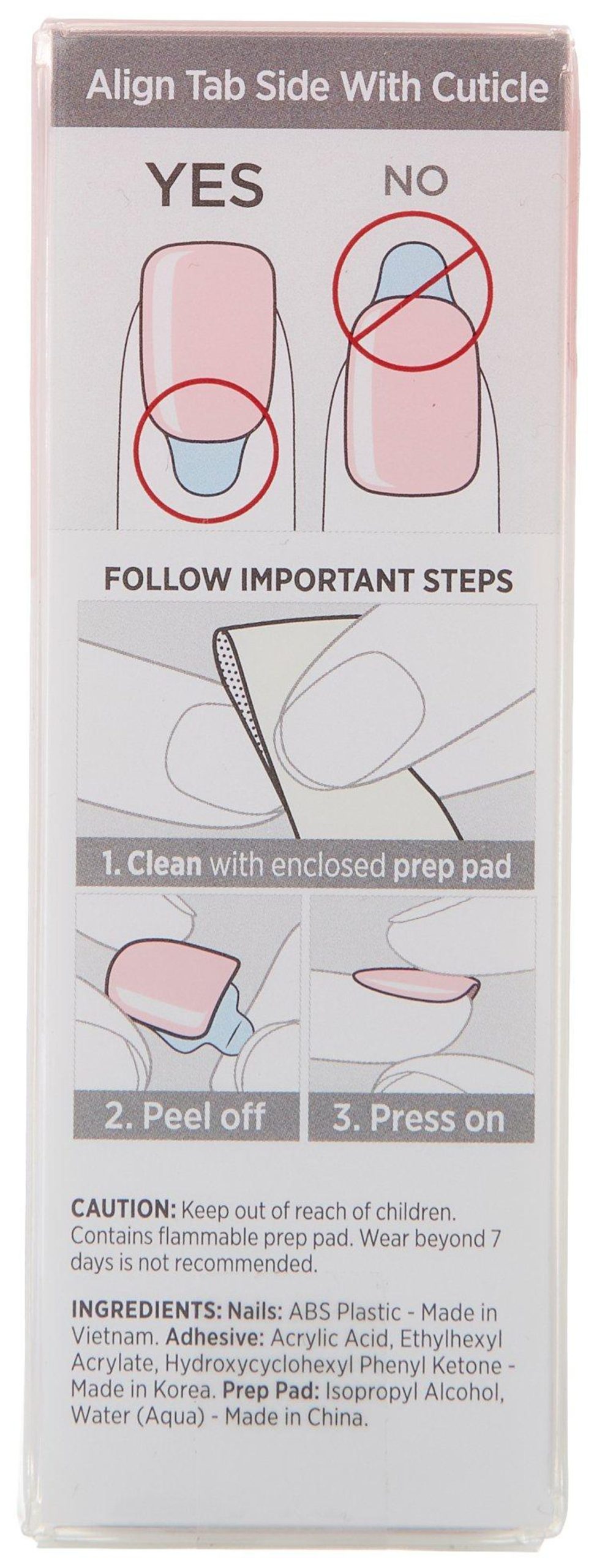 Includes a set of 30 pre-glued nails. Solid glossy color. 12 months expiration from first use.