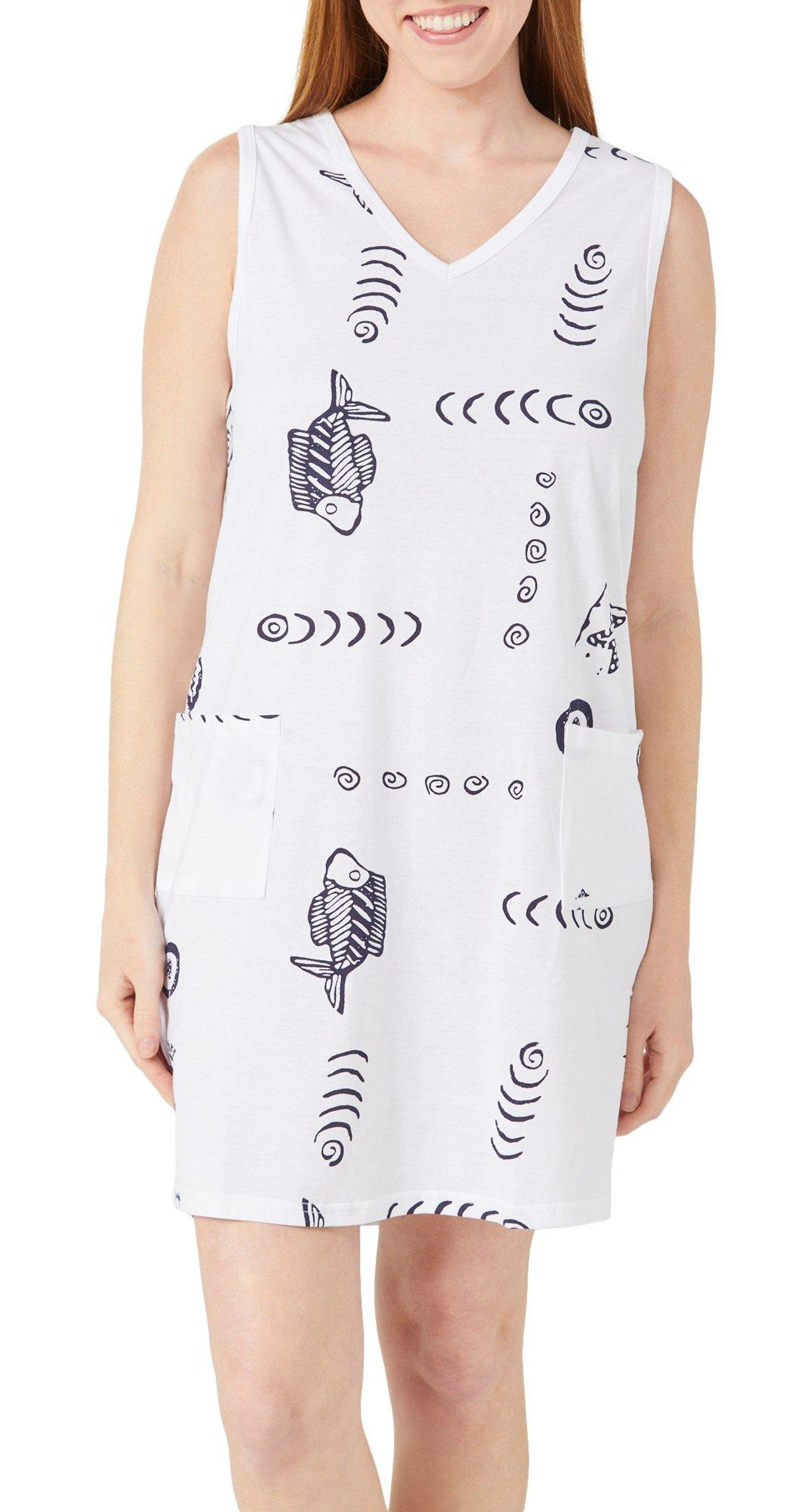 In Gear Womens V-Neck Tank Fish Print Cover Up