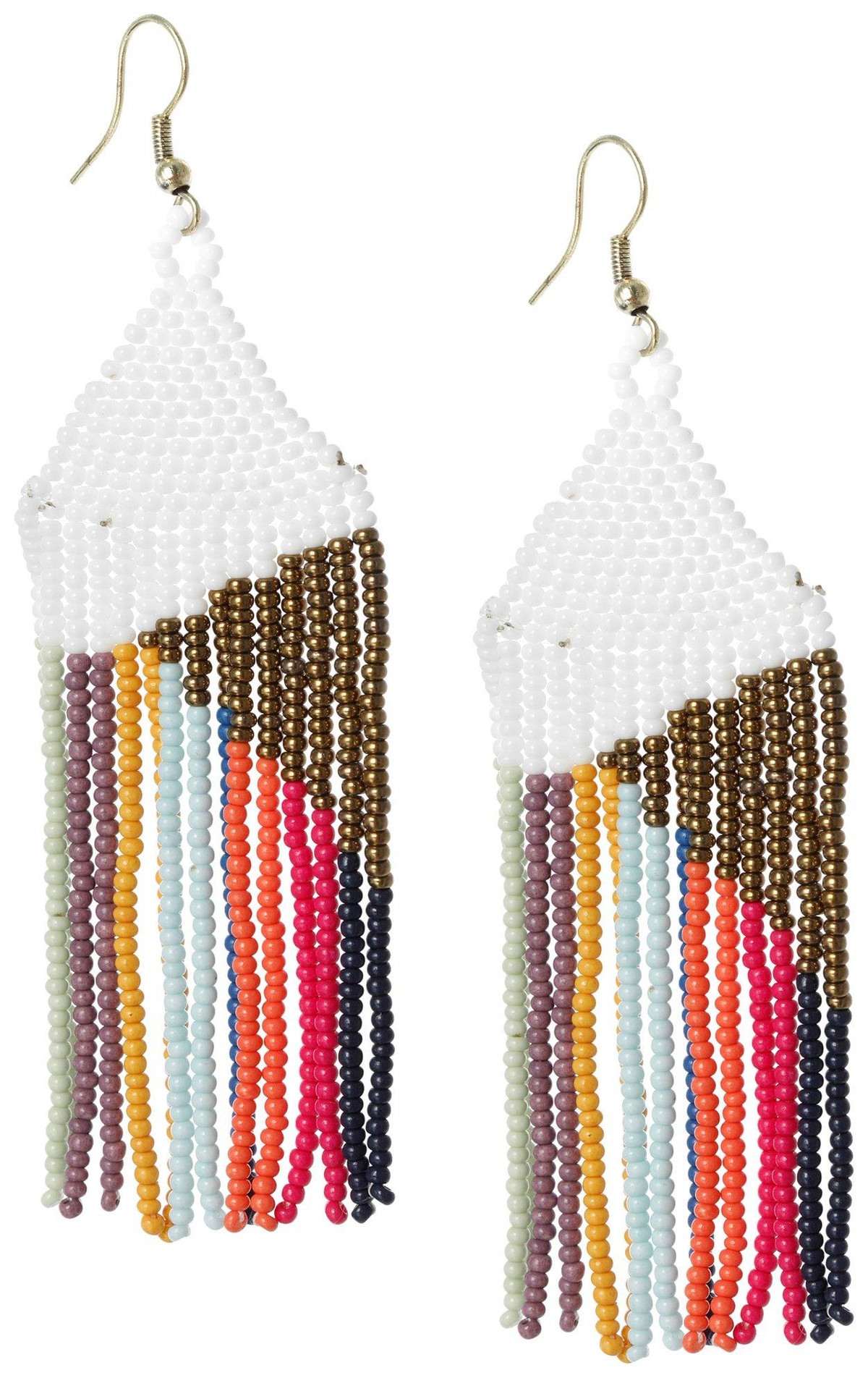 Add a cool touch to your style with the Elise Angle with Stripes Beaded Fringe Earrings White Rainbow earrings. Hypoallergenic. 3.25 in. length.