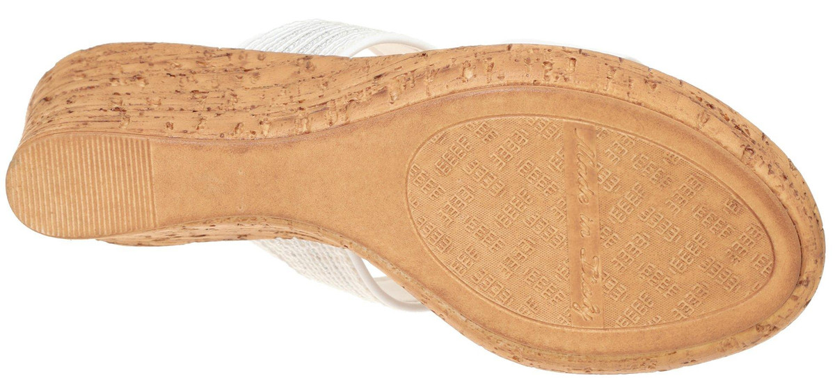 A quality pair of sandals by Italian Shoemakers that provide a stylish look. These wedge sandals feature decorative double-band fabric upper, O-ring detail, thong styling and comfort padded footbeds. Heel height approximately 2 in.