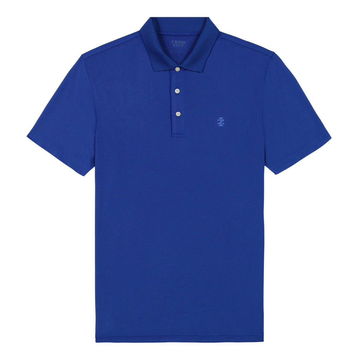 IZOD dedicates itself to modern sportswear that is bold and full of color. This IZOD golf polo shirt features a grid solid design on soft lightweight stretch fabric, 3-button placket, a roll-resistant spread collar, short sleeves, side slits hemline, moisture-wicking technology, UPF – 20, natural stretch, breathable, quick dry, sun protection, side slits at hemline, and a classic fit. Fabrication 100% polyester. Length measures approximately 30 inches from shoulder to hemline.