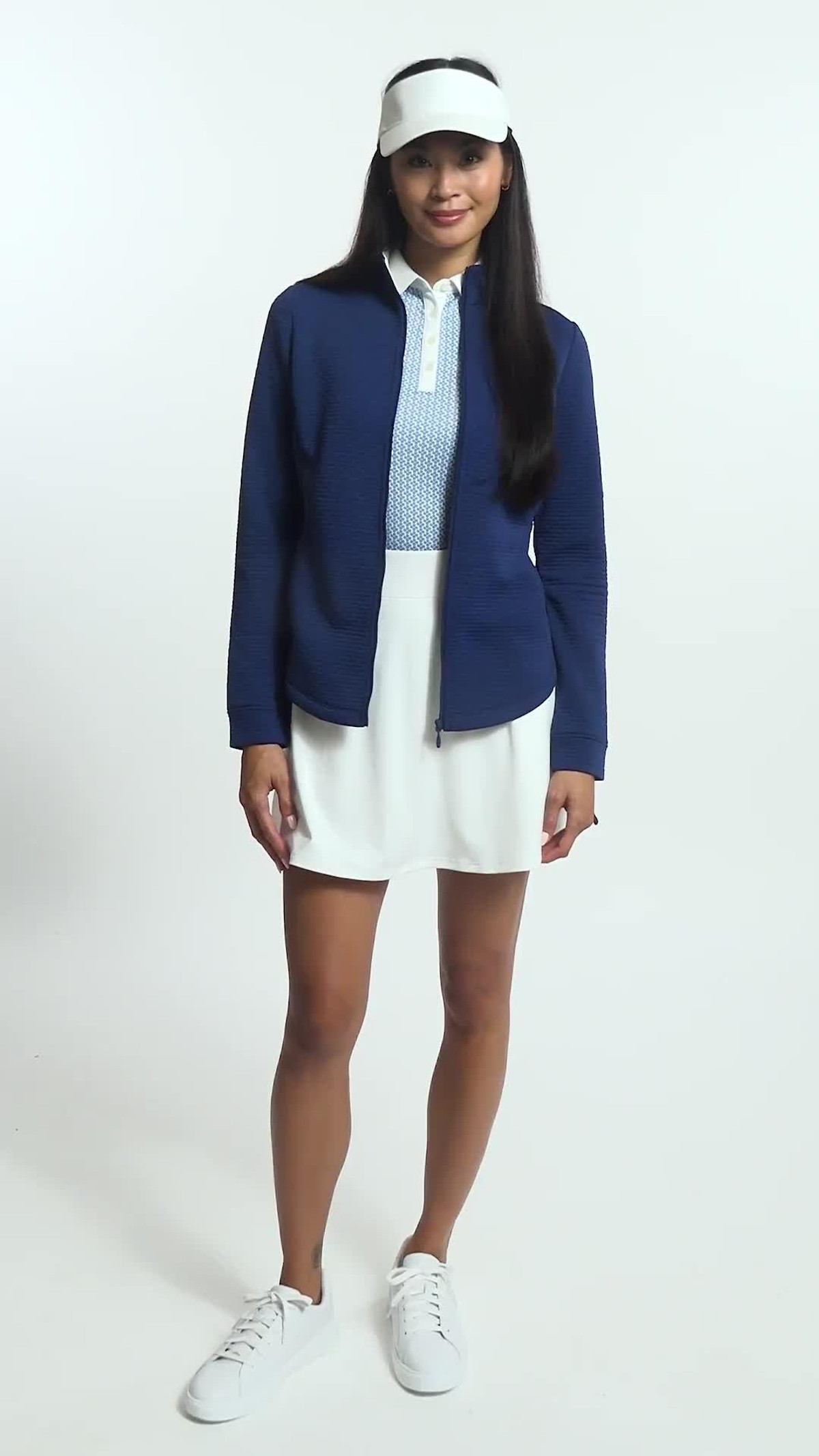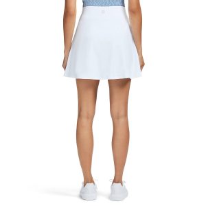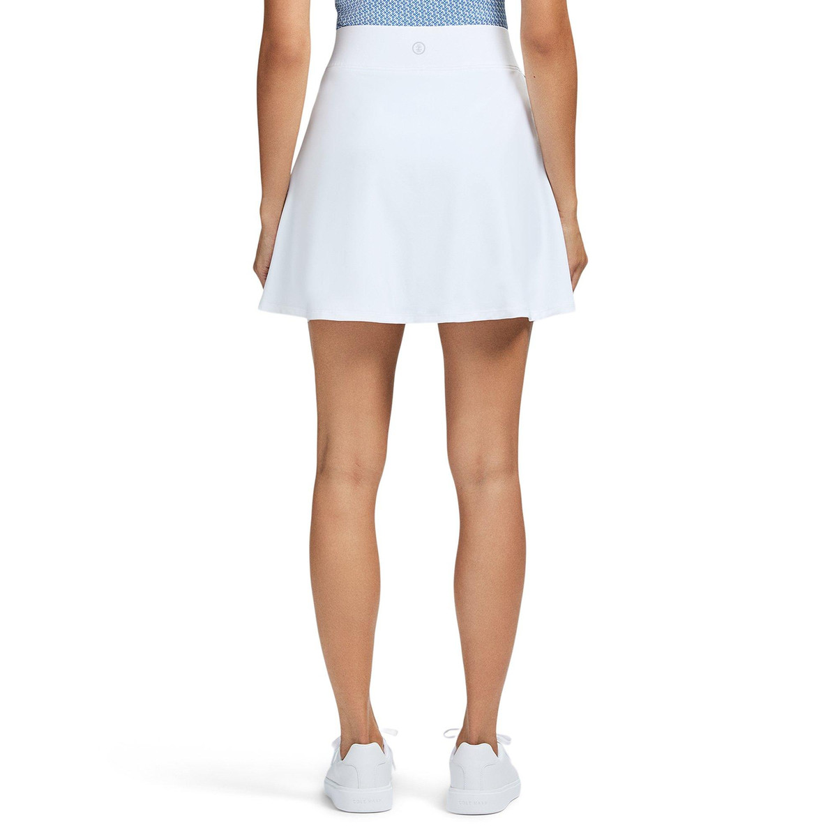 This performance stretch knit skort features a wide stretch waistband with tummy-shaping support for a flattering fit. The solid body is accented with contrast piping for a sleek, stylish look, while the contrast inner waistband detail adds a modern touch. Complete with a knit shorts mesh liner for comfort and coverage, this 17 in. skort is designed for both performance and style. Fabrication is 83% polyester, 17% spandex.
