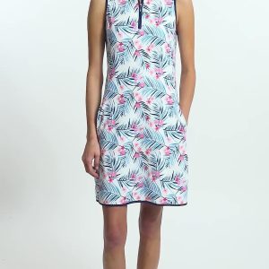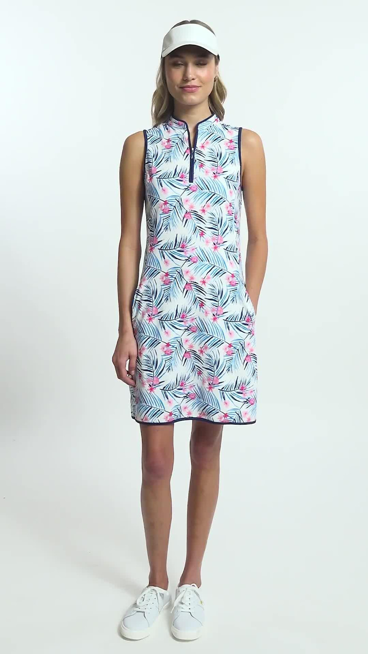 Whether youre chasing tennis balls or perfecting your golf swing, weve got the dress for you. Made from moisture-wicking fabric thats soft to the touch, youll stay comfortable on and off the court. The contrast trim at the collar, placket, armholes, and hem adds a modern detail, while the A-line cut and shaped princess seams provide a flattering, tailored fit. Fabrication 92% polyester, 8% spandex.