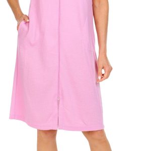 Experience ultimate comfort and style with our Women’s 42-inch Zip Up Short Sleeve Robe. Crafted from 100% polyester, this robe features a luxurious waffle knit fabrication that feels soft against your skin. The full zippered closure ensures easy wear, while the embroidered floral design on the collar adds a touch of elegance.