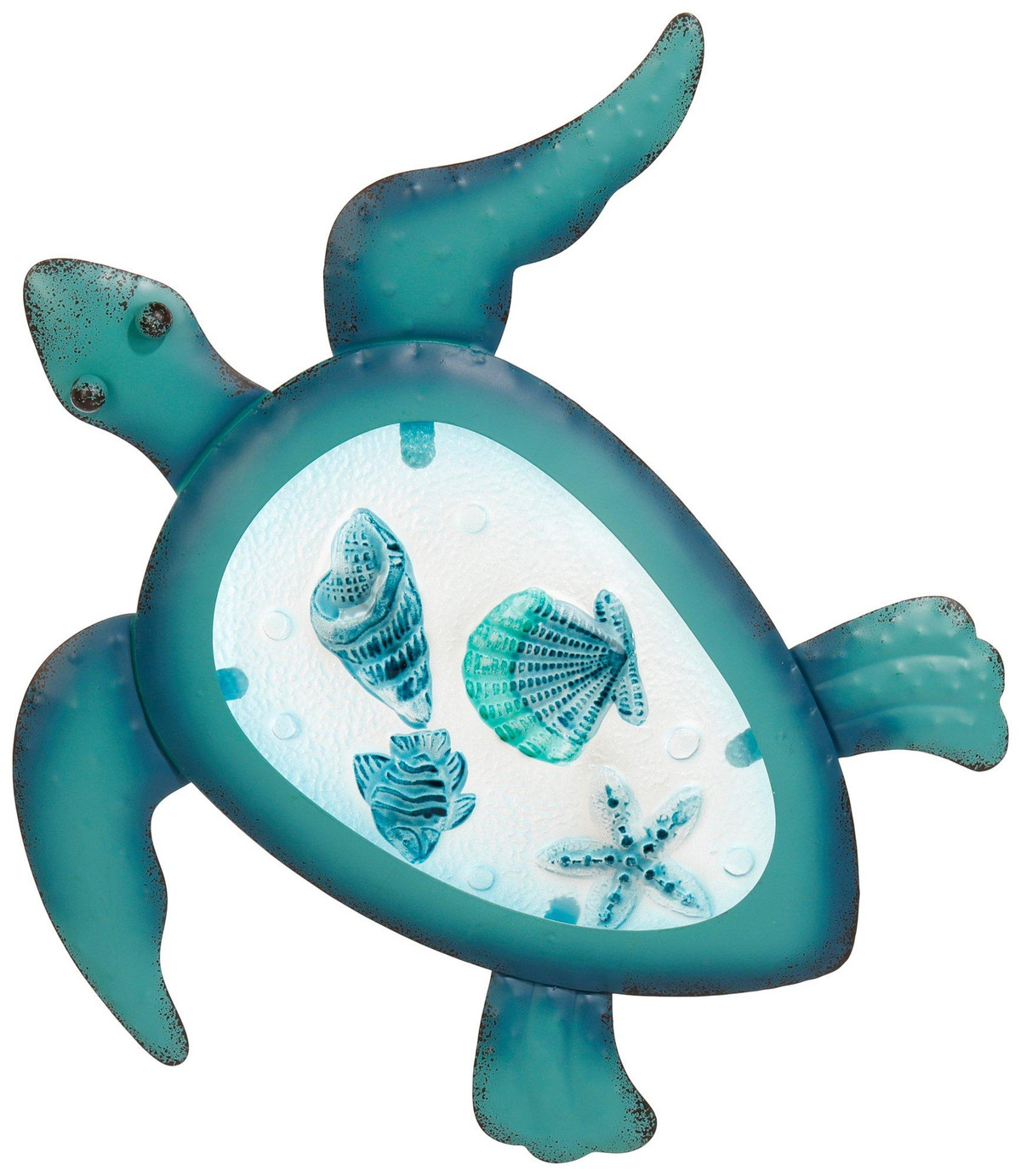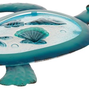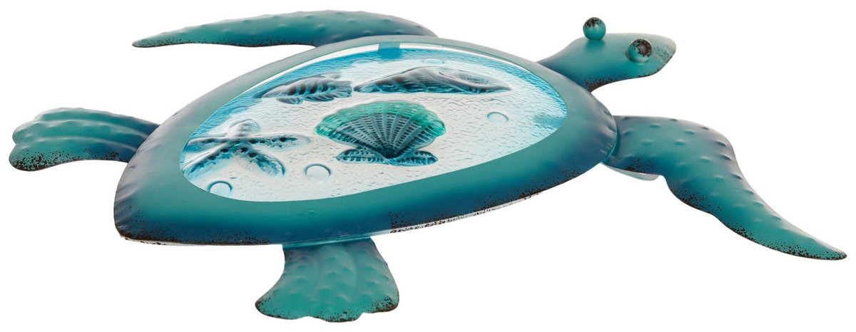 Introducing the 14 in Metal Turtle Wall Accent, a striking piece that brings a touch of nature-inspired artistry to your home. This wall accent features a beautifully detailed turtle design, crafted from durable metal with a sleek finish. Perfect for adding a unique and playful element to any room, it can be easily hung on any wall. Ideal for those who appreciate whimsical decor and want to make a bold statement in their living space. Measures approximately 14 in x 14 x 1 in.