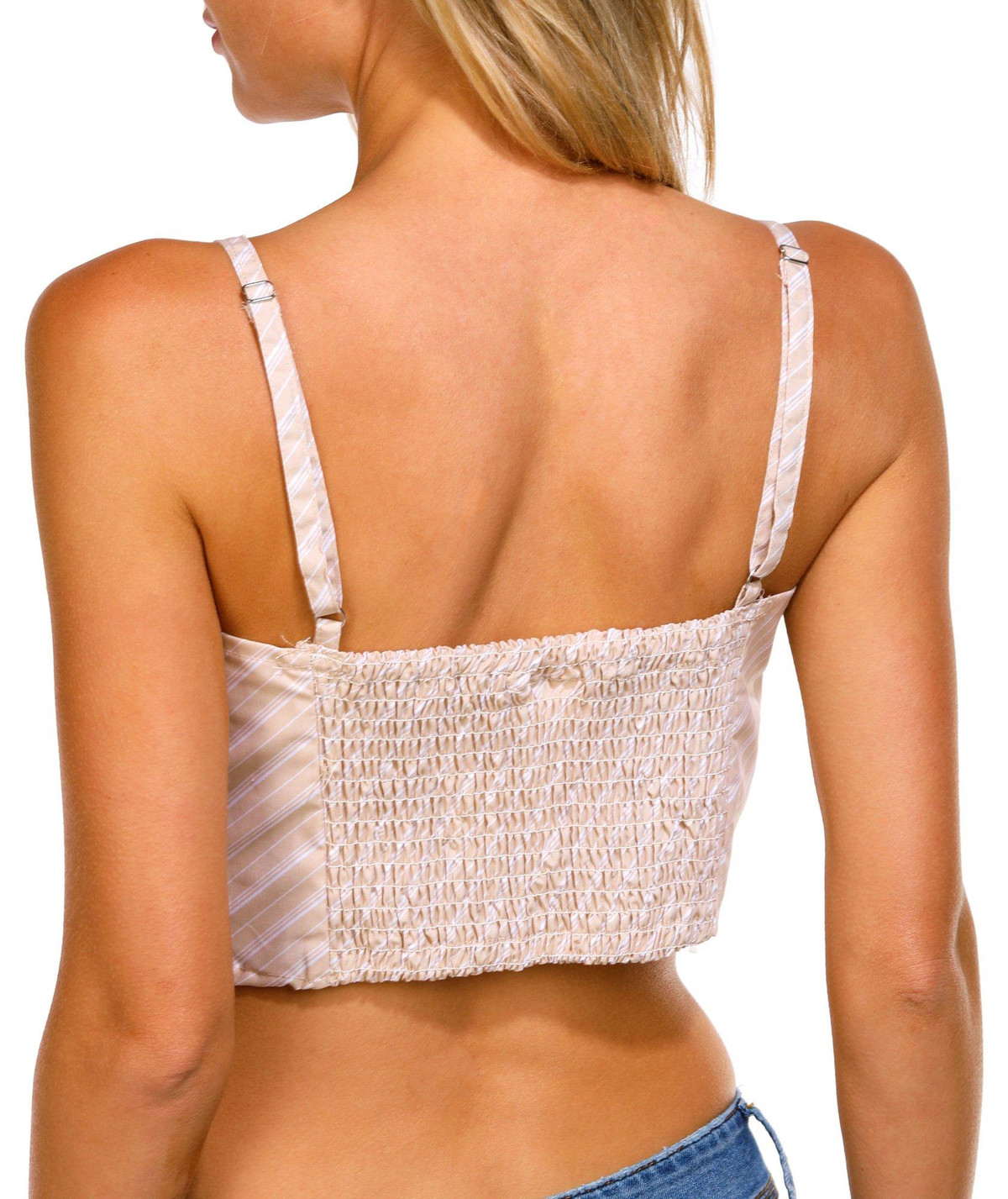 Make a bold statement with the Juniors Asymmetrical Stripe Crop Top. Crafted from a blend of cotton and polyester, this top features a stylish striped print, adjustable spaghetti straps, and an 11-inch length for a trendy, cropped look. The smocked back ensures a comfortable fit, making it perfect for any casual or chic outfit. Embrace a unique and fashionable style with this versatile crop top.