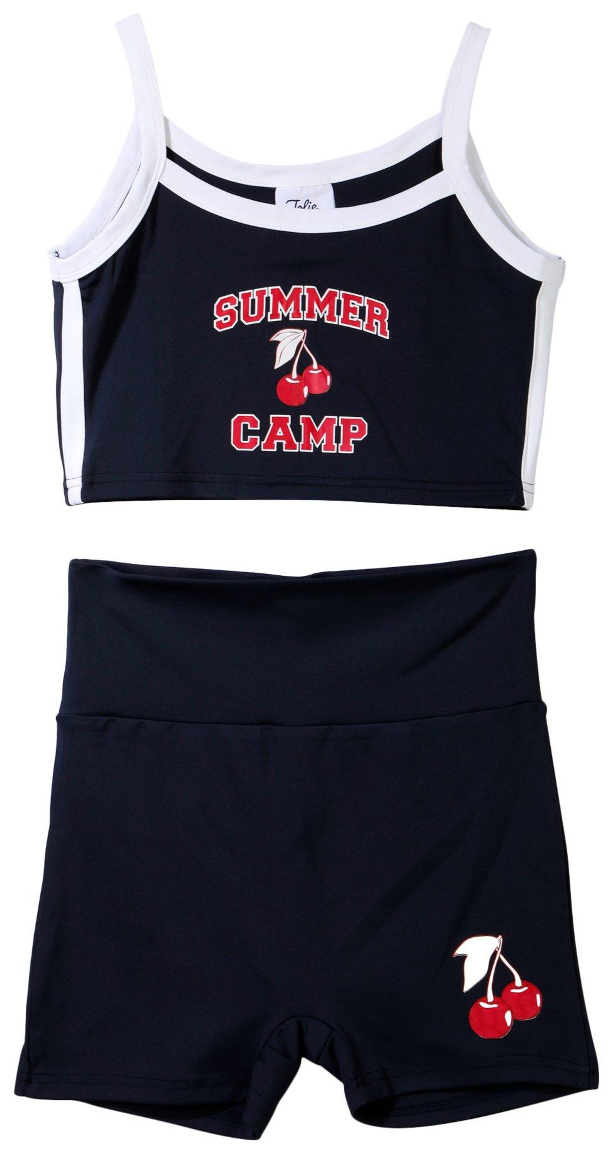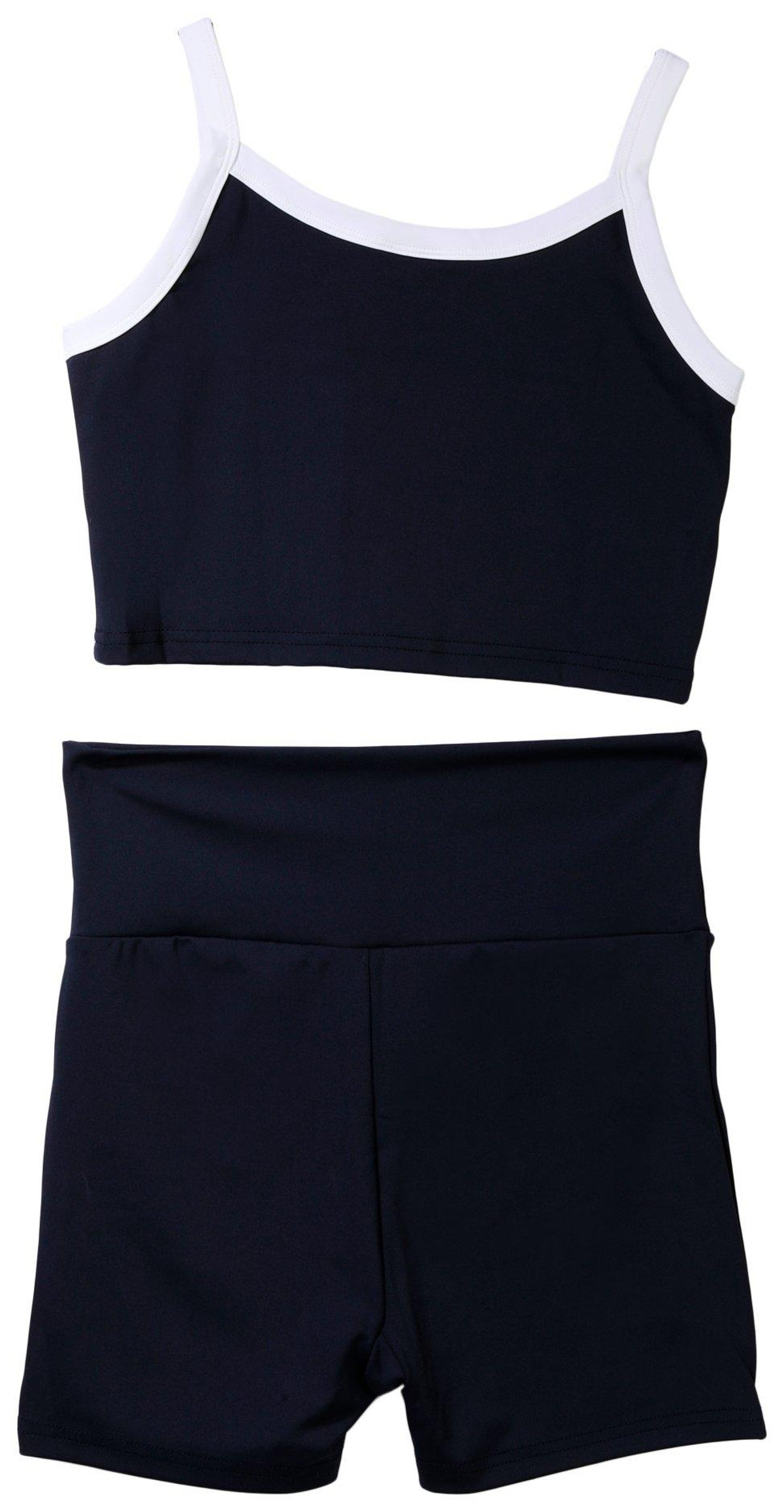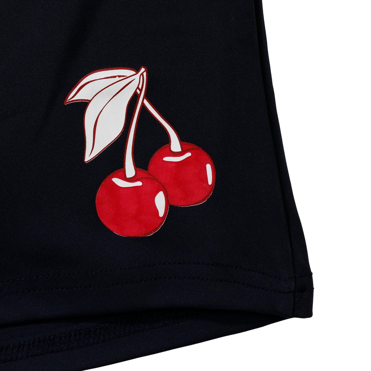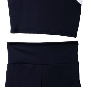 Turn heads this summer with a girls’ two-piece set designed for style and comfort. The sleek black spandex and polyester blend offers the perfect stretch, while the cherry design on the top adds a playful touch. Crisp white trim enhances the look, making it a standout choice for any warm-weather occasion. Whether she’s running around or lounging, the cropped tank top and bike short combo is built for fun, freedom, and effortless summer vibes.