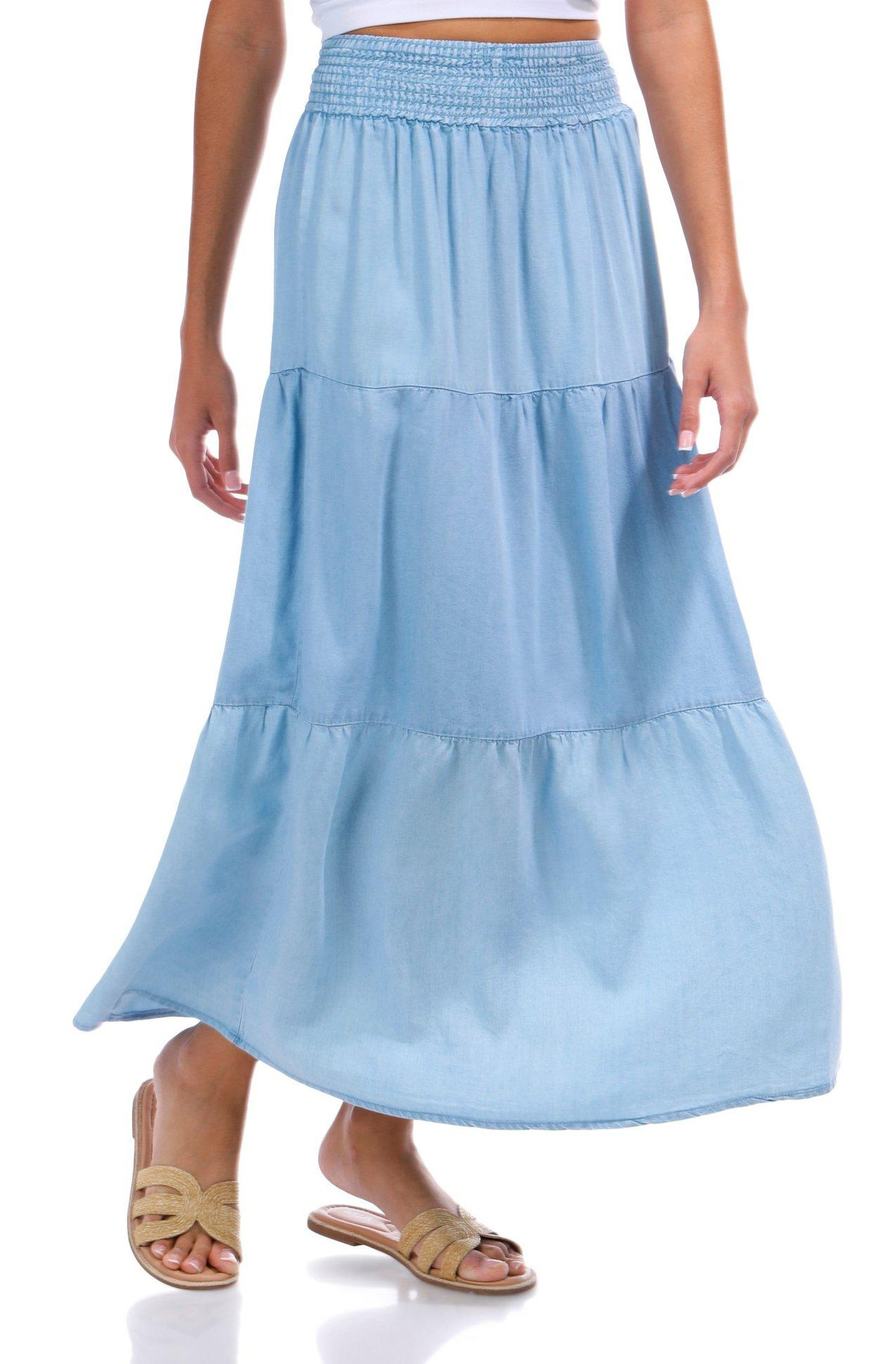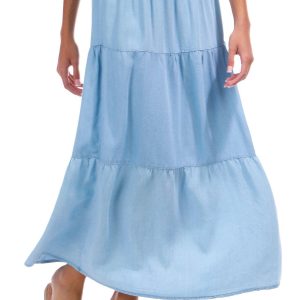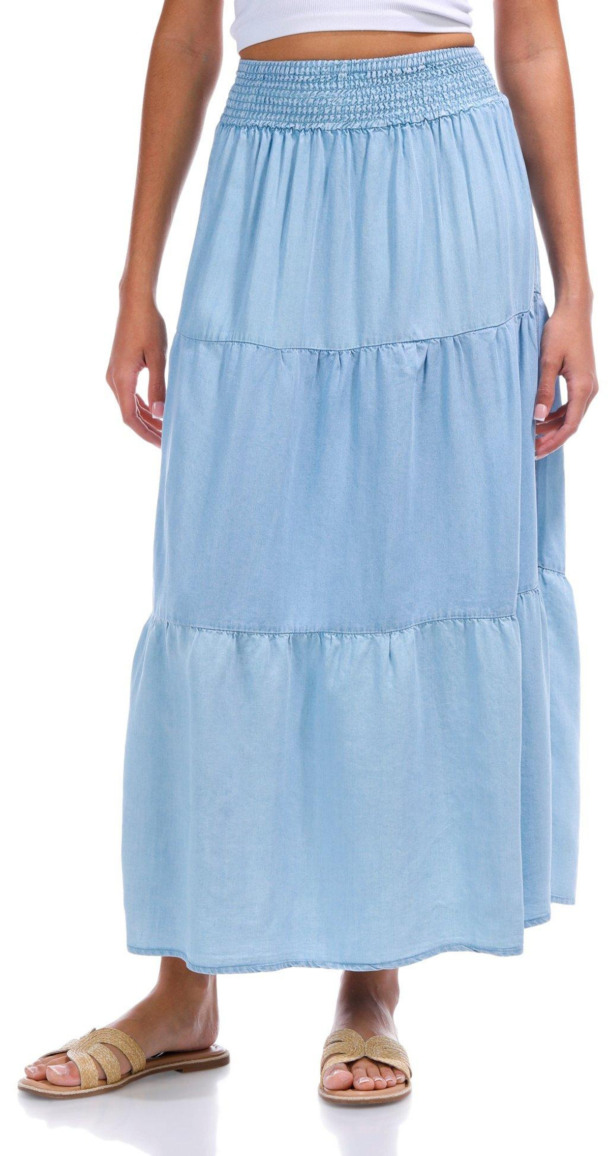 Jolie & Joy Juniors Chambray Tiered Maxi Skirt