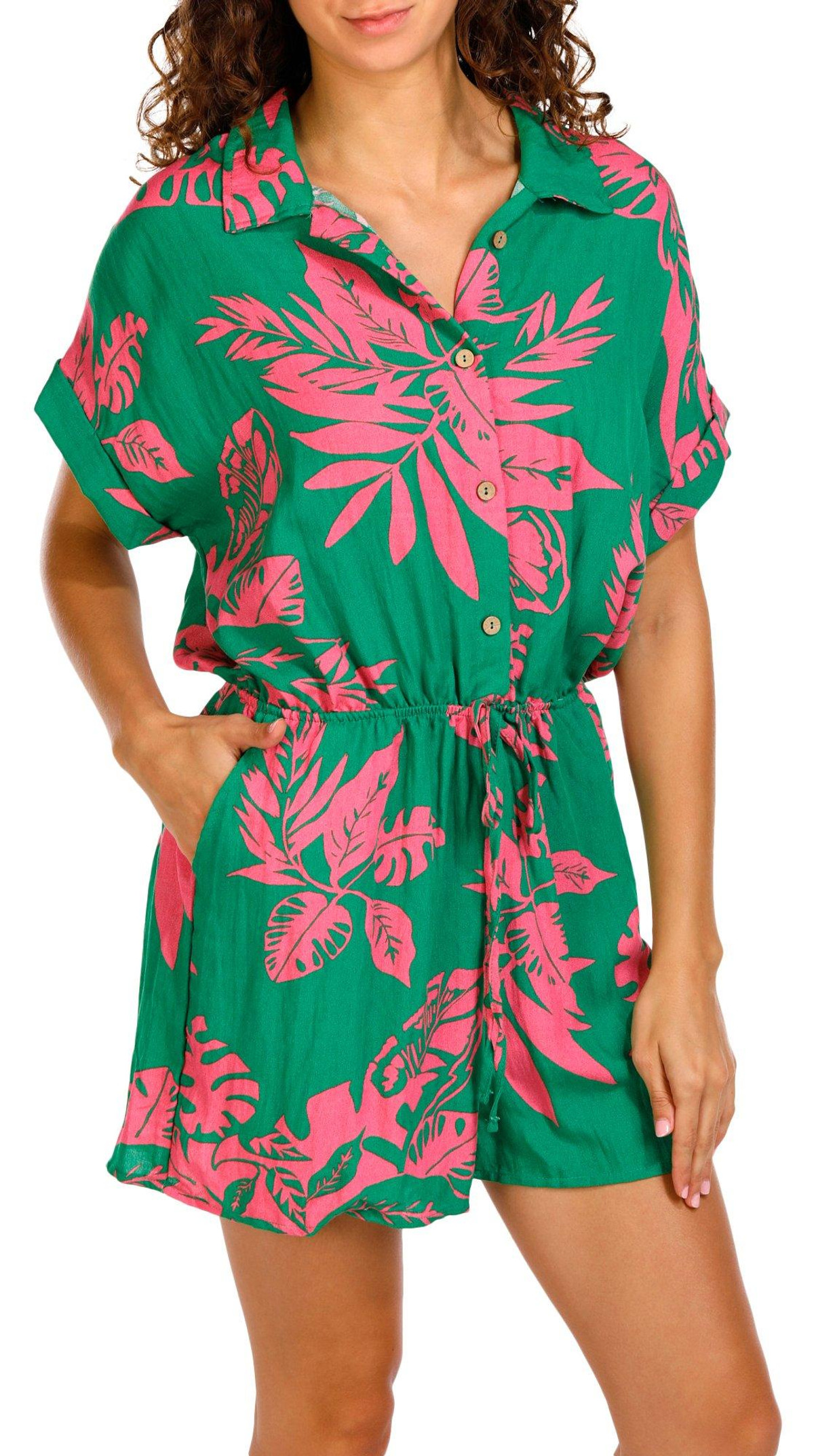 Discover effortless style with the Juniors Short Sleeve Print Romper, made from a blend of nylon and rayon for a soft and breathable feel. This romper features a chic button-down front, a flattering waist tie, and a collared neckline for a polished look. With a length of 30 inches, it’s perfect for casual outings or dressed-up occasions. Embrace comfort and fashion with this versatile and trendy piece.