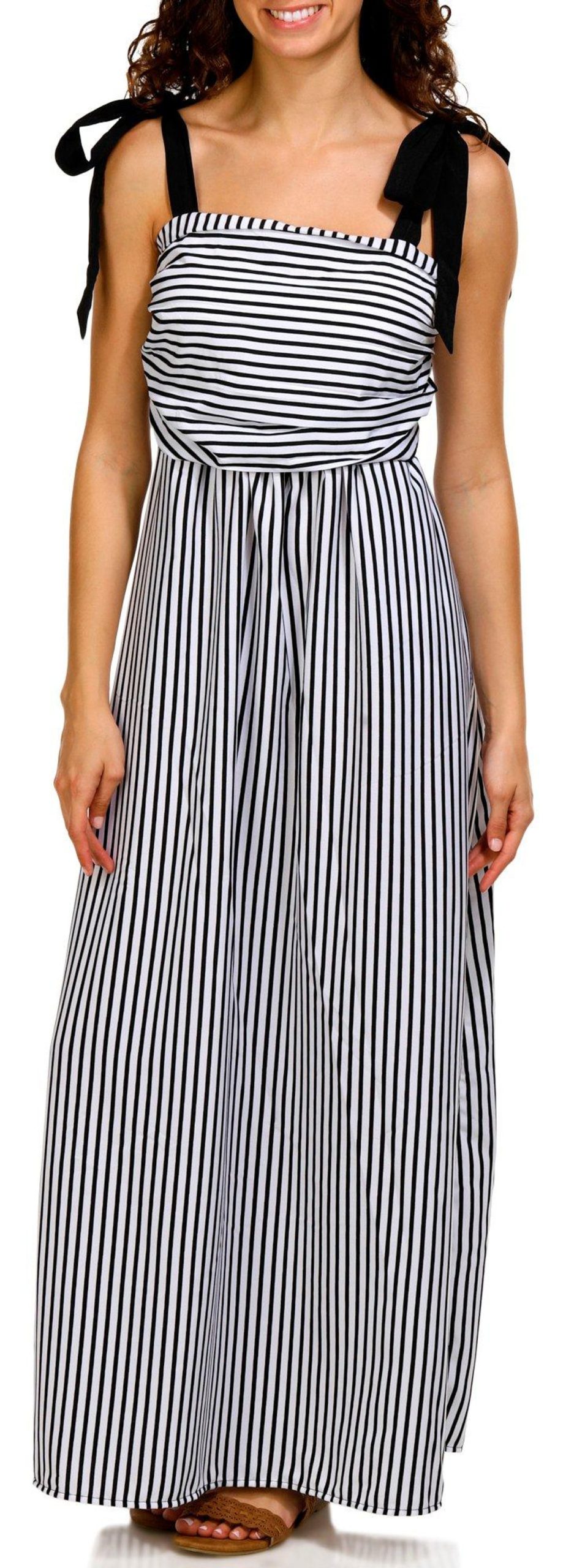 Introducing the Juniors Striped Maxi Dress, made from 100% polyester for a comfortable and stylish fit. This elegant dress features a striking stripe print, tie straps, and convenient side seam pockets. The square neckline adds a touch of sophistication, while the 48-inch length makes it perfect for any occasion. Ideal for warm weather outings or casual gatherings, this maxi dress combines functionality with a chic design, making it a versatile addition to your wardrobe.