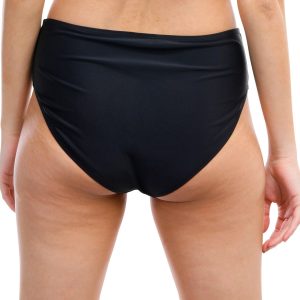 This lined swim bottom features a solid color design, a high waistband, and medium coverage. Fabrication 82% nylon, 18% spandex.