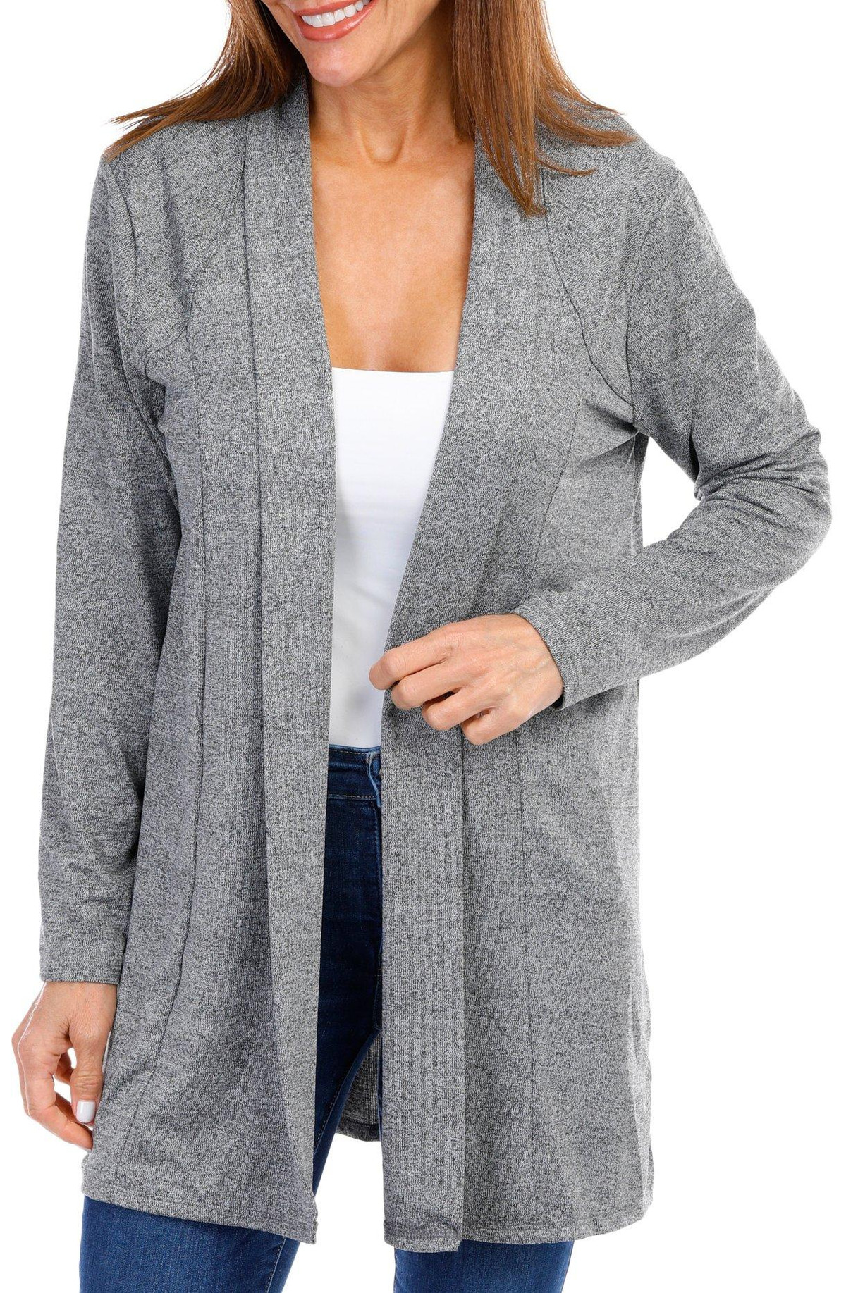 Introducing the Open Brushed Hacci Cardigan, a perfect blend of comfort and style. Crafted from a lightweight fabric blend, this cardigan offers a soft, brushed texture that feels luxurious against the skin. Its open front design adds a touch of elegance, making it easy to layer over any outfit. This versatile piece is a must-have for any wardrobe, providing both warmth and a fashionable look. Fabrication is 95% polyester and 5% spandex.
