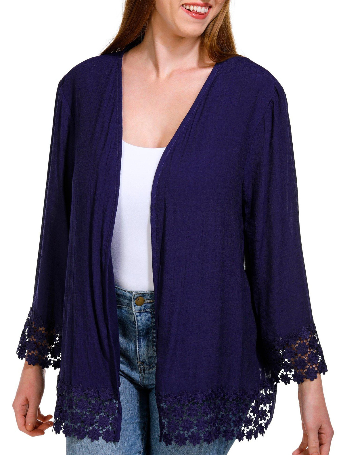 Crafted from a luxurious blend of 62% rayon and 38% polyester, this cardigan drapes softly against the skin, offering a light, breathable feel that moves with you. The intricate crochet details add an artisanal touch, creating a look that exudes quiet sophistication and charm. Whether you’re layering it over a simple tank for a casual brunch or pairing it with a dress for an evening out, this versatile piece elevates your style with understated allure.