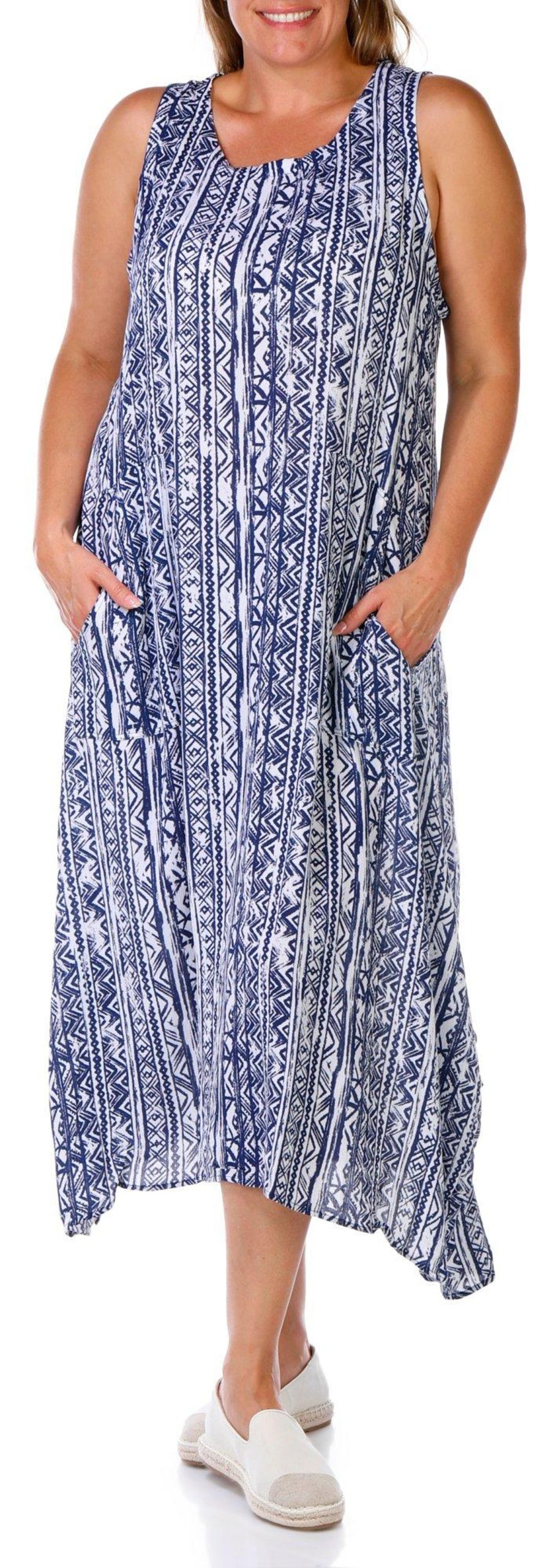 This sleeveless midi dress in lightweight crepon offers breezy elegance with versatile styling. Designed to be worn two ways, this piece transforms from long to short with ease, making it perfect for day-to-night transitions or travel-ready looks. Fabrication is 100% rayon.
