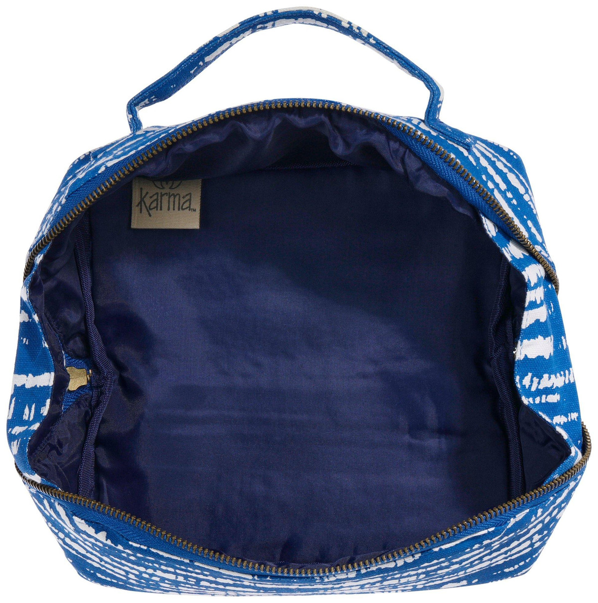 Keep all your beauty must-haves together with the Zip Cosmetic Bag! With its diagonal zipper, open flat design, inside zip pocket, top carry handle and wipeable polyester lining this bag lets you get glam on the go with ease! Use this cosmetic bag for anything from makeup, to school or work supplies. Get organized and even gift this item to anyone special. Approx. 9.5 x 7 Inches.