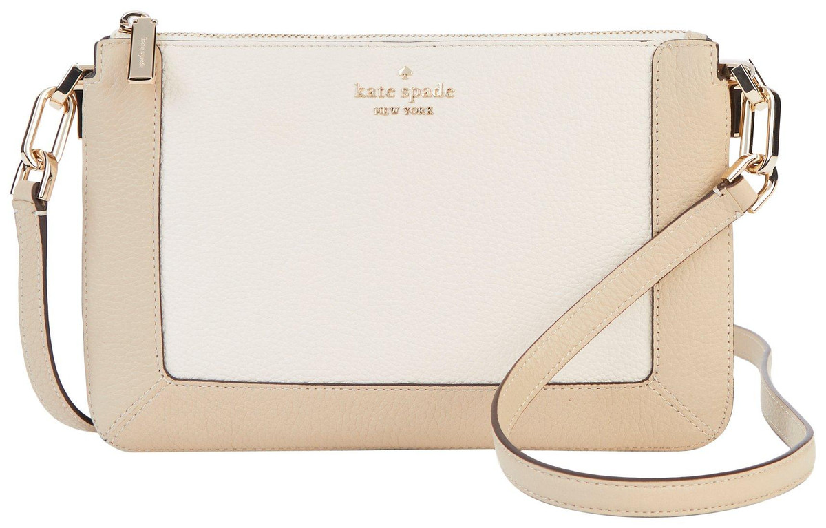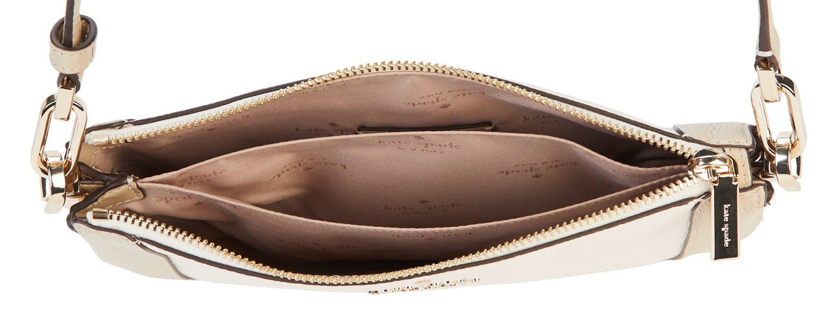 Signature logo hardware and rich leather lend luxe elements to a structured crossbody furnished with a compact interior for essential storage. Features: top zip closure, removable, adjustable strap and logo-jacquard lining. Measures: 10 in W x 6.5 in. H x 1 in. D. Shoulder drop: 23 in.