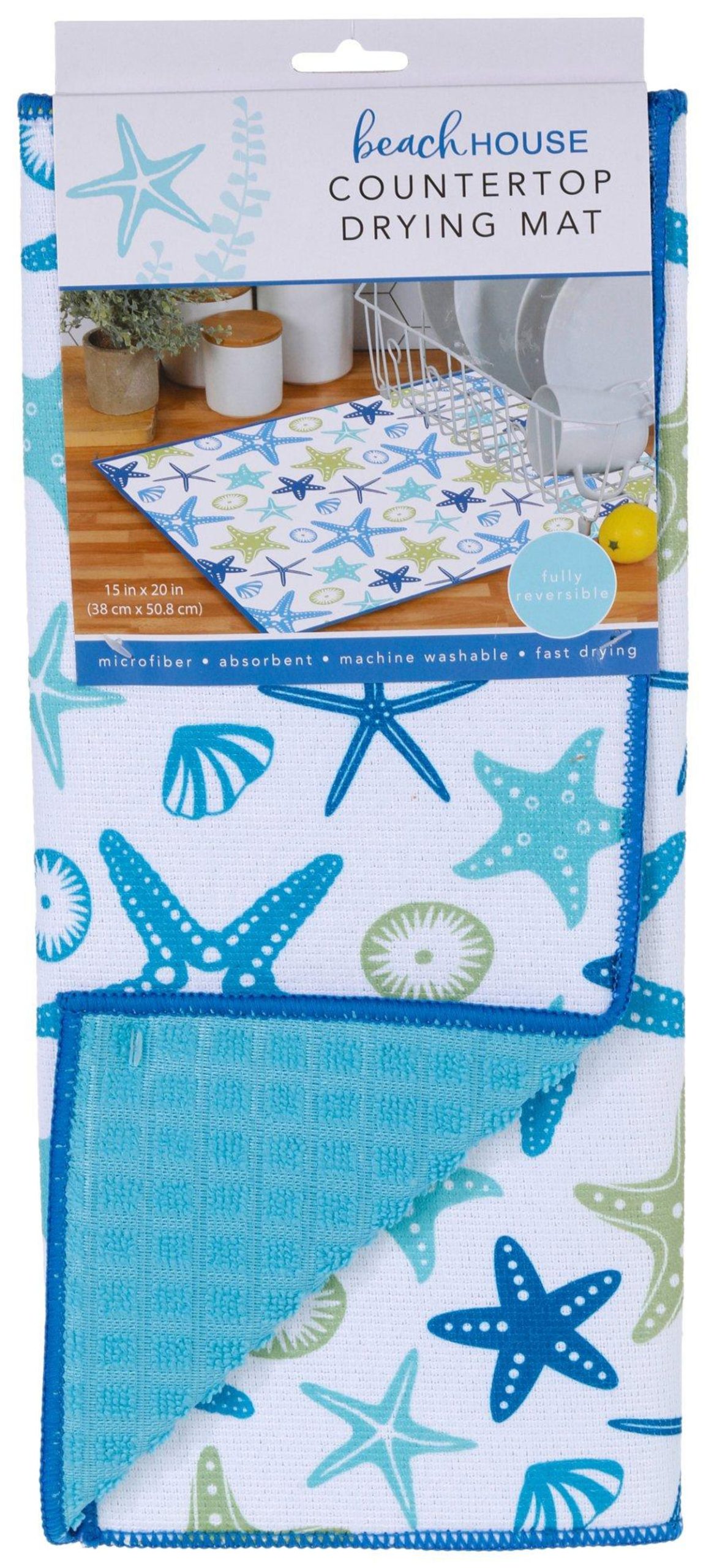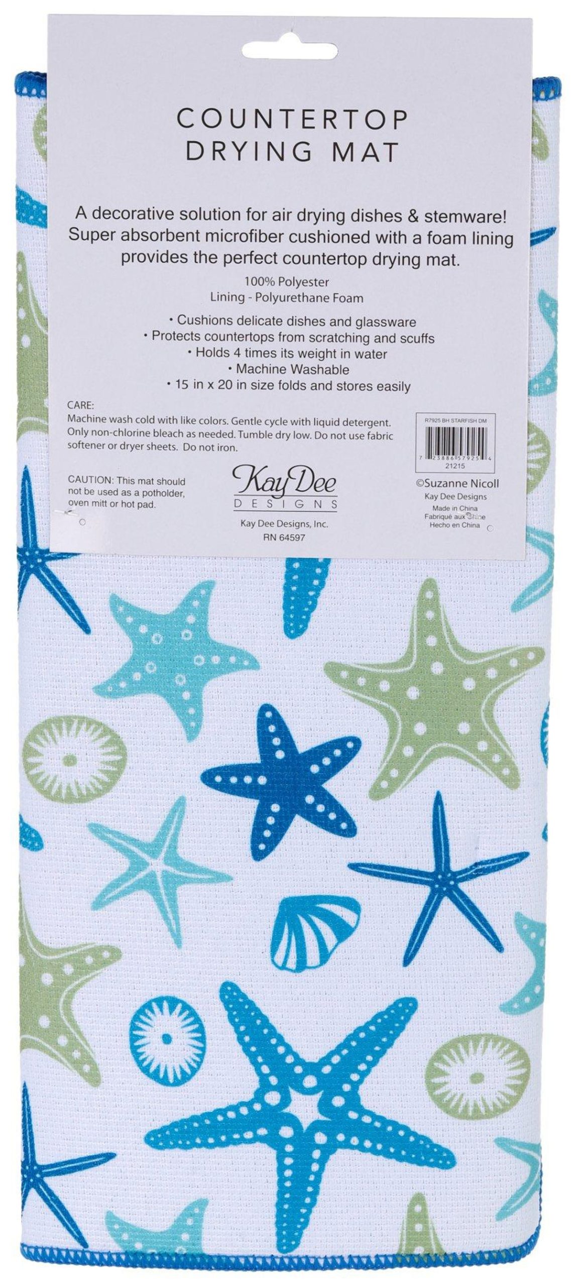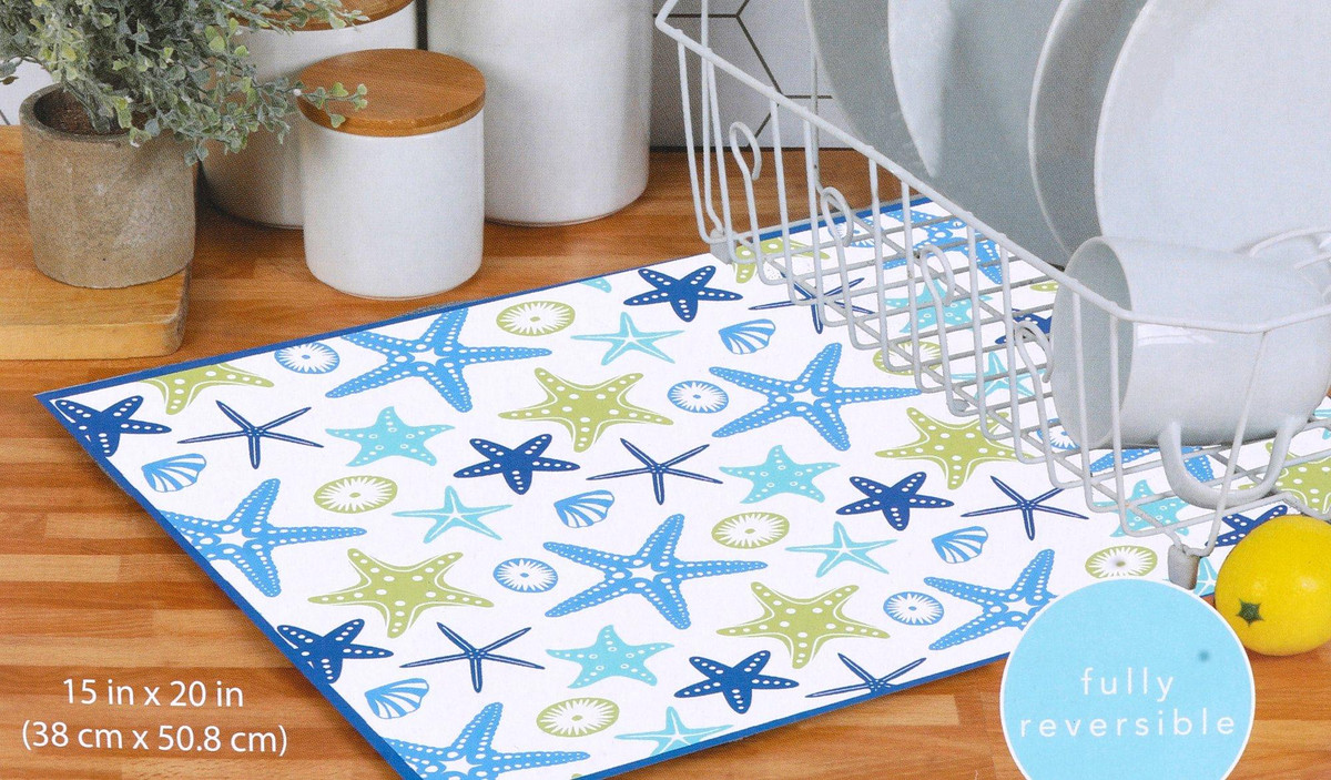 Add style and function to your kitchen with this super absorbent dish drying mat. Designed with soft, plush texture and charming patterns, it holds up to 4 times its weight in water to keep counters dry. Perfect under a dish rack or on its own, it’s fast-drying, machine washable, and folds for easy storage, combining beauty, efficiency, and everyday convenience. Fabrication is 100% polyester (shell), 100% polyurethane (filling). Measures approximately 15 in x 20 in.