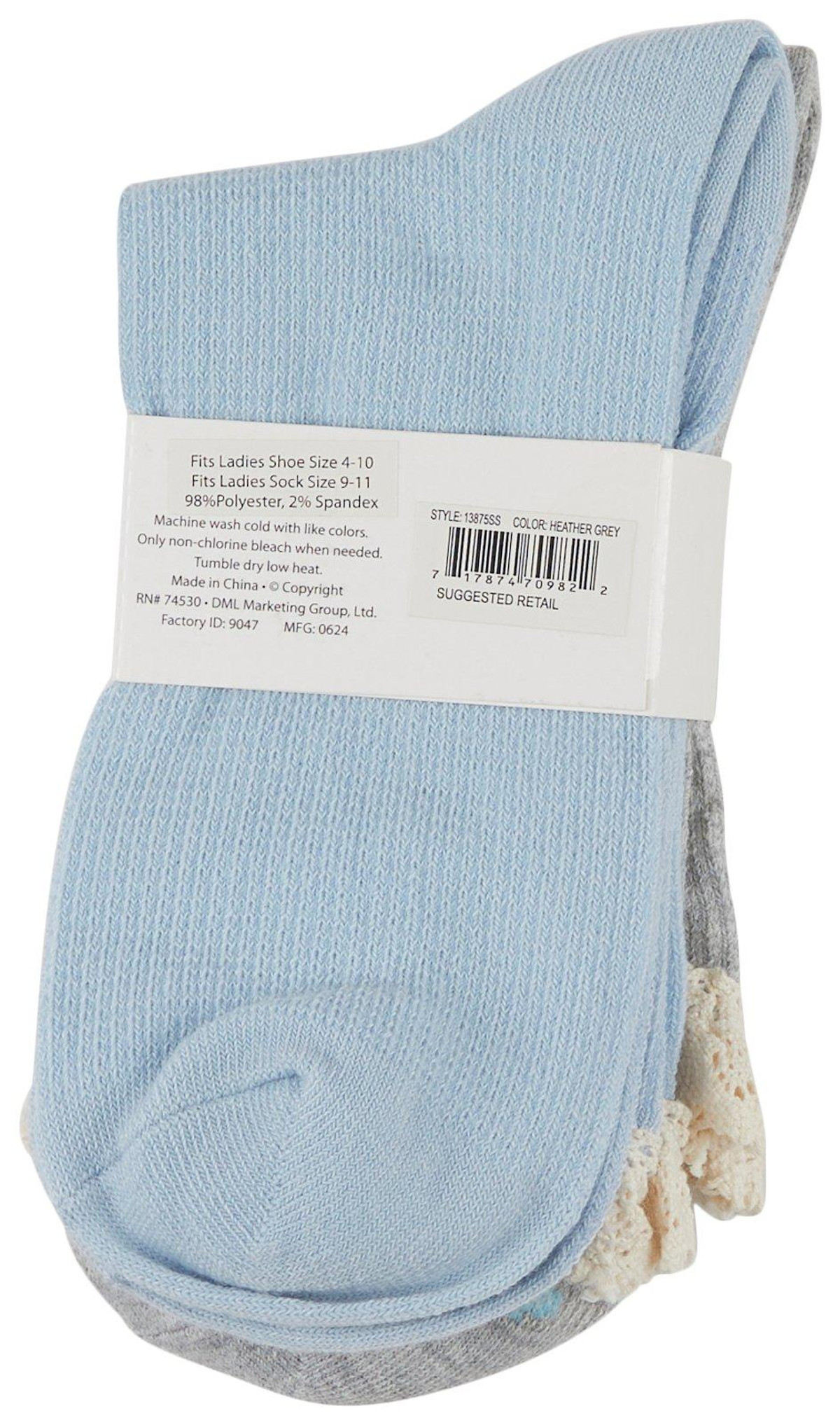 Introducing our Women’s 2-Pack Lace Ruffle Trim Socks, crafted from a durable blend of polyester and spandex. These crew-length socks feature assorted prints and a delicate lace ruffle trim, adding a touch of elegance to your wardrobe. Perfect for women’s shoe sizes 4-10, they offer a comfortable fit and a stylish flair for any occasion.