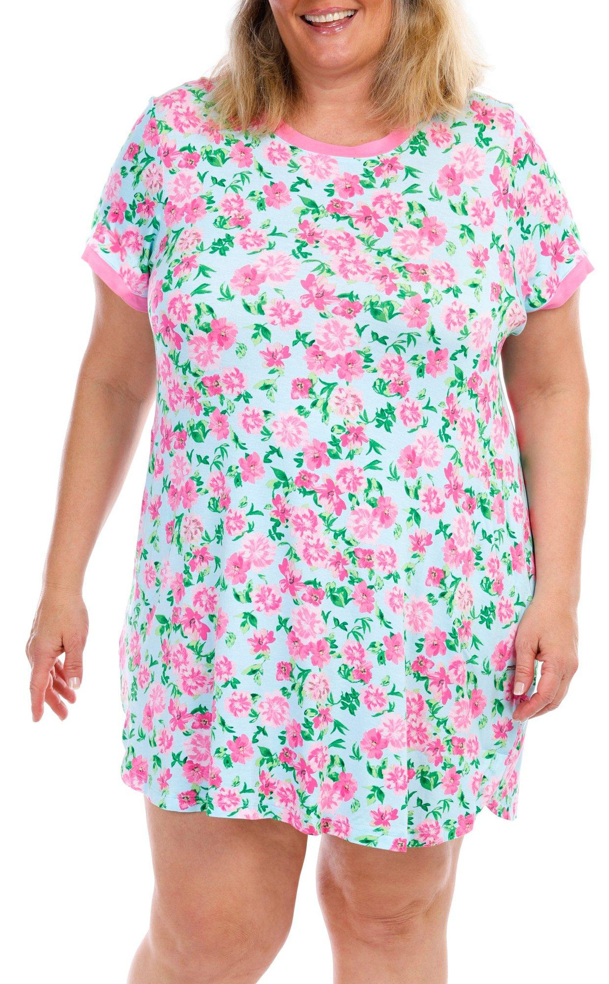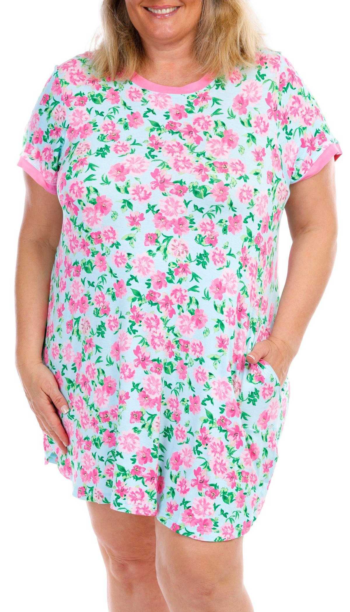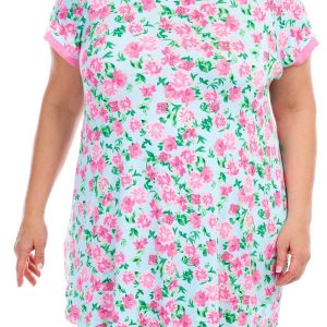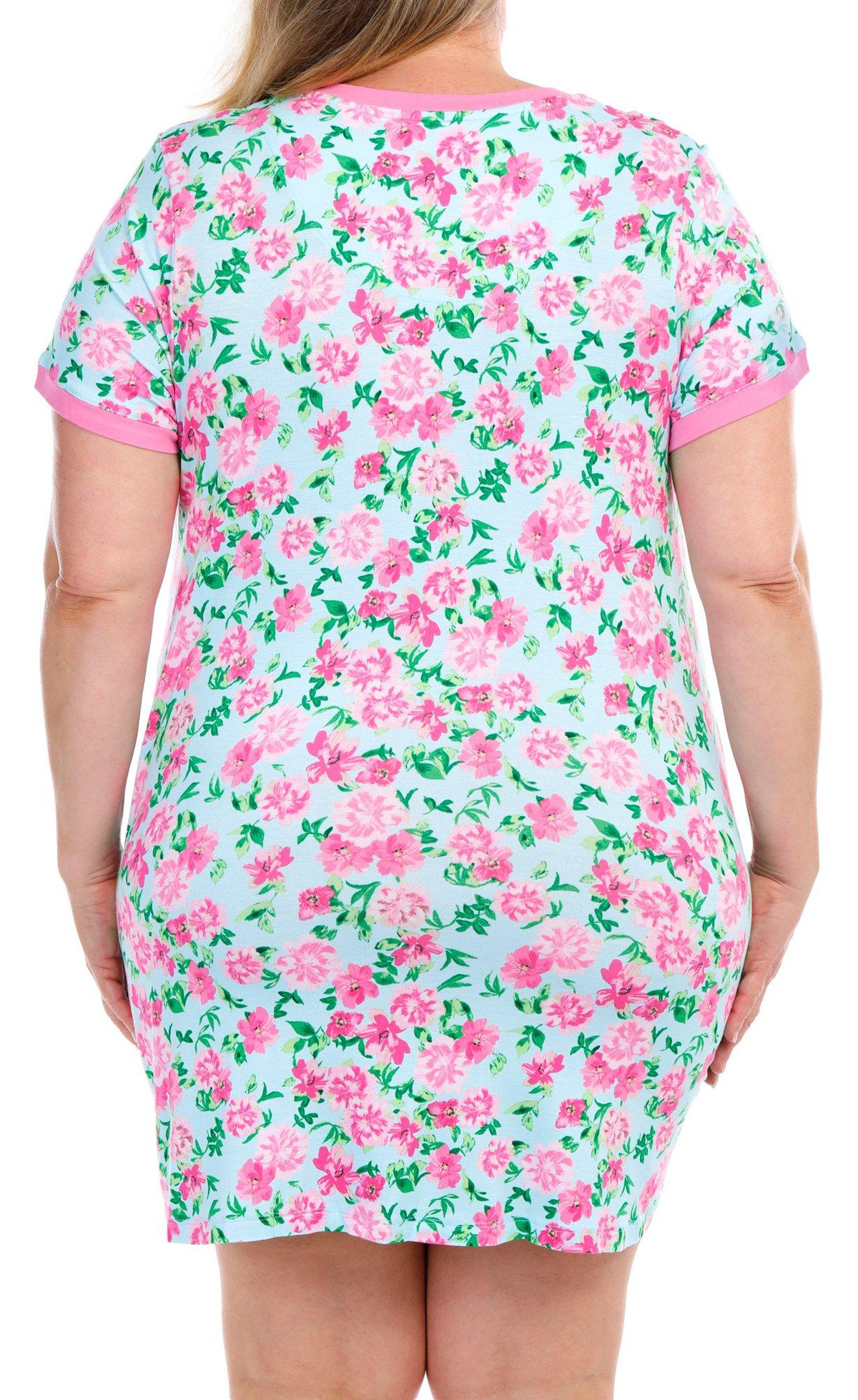 Kensie Plus Floral Print Short Sleeve Sleepshirt