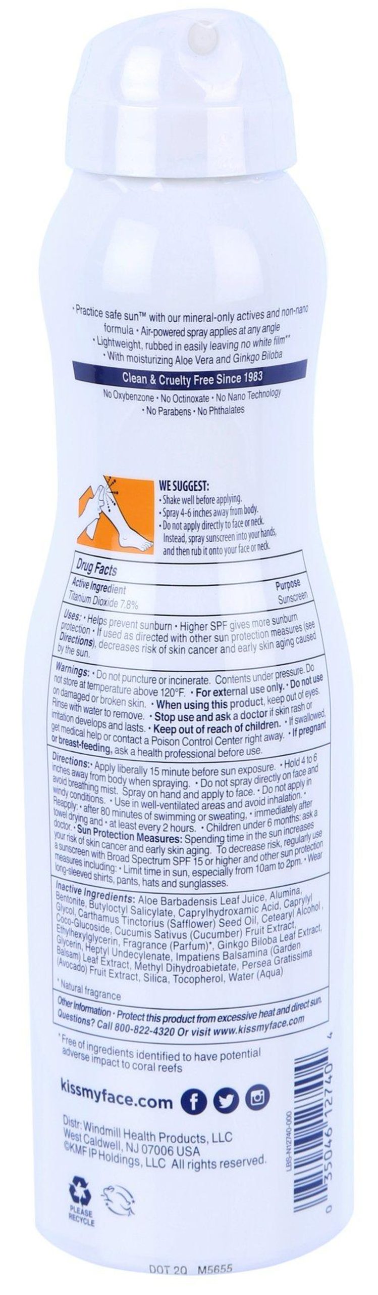 Practice safe sun with our mineral-only actives and non-nano formula. Air-powered spray applies at any angle. Lightweight, rubbed in easily leaving no white film. Lightweight and ultra sheer Broad spectrum SPF 30 Water resistant (80 minutes) With moisturizing Aloe…
