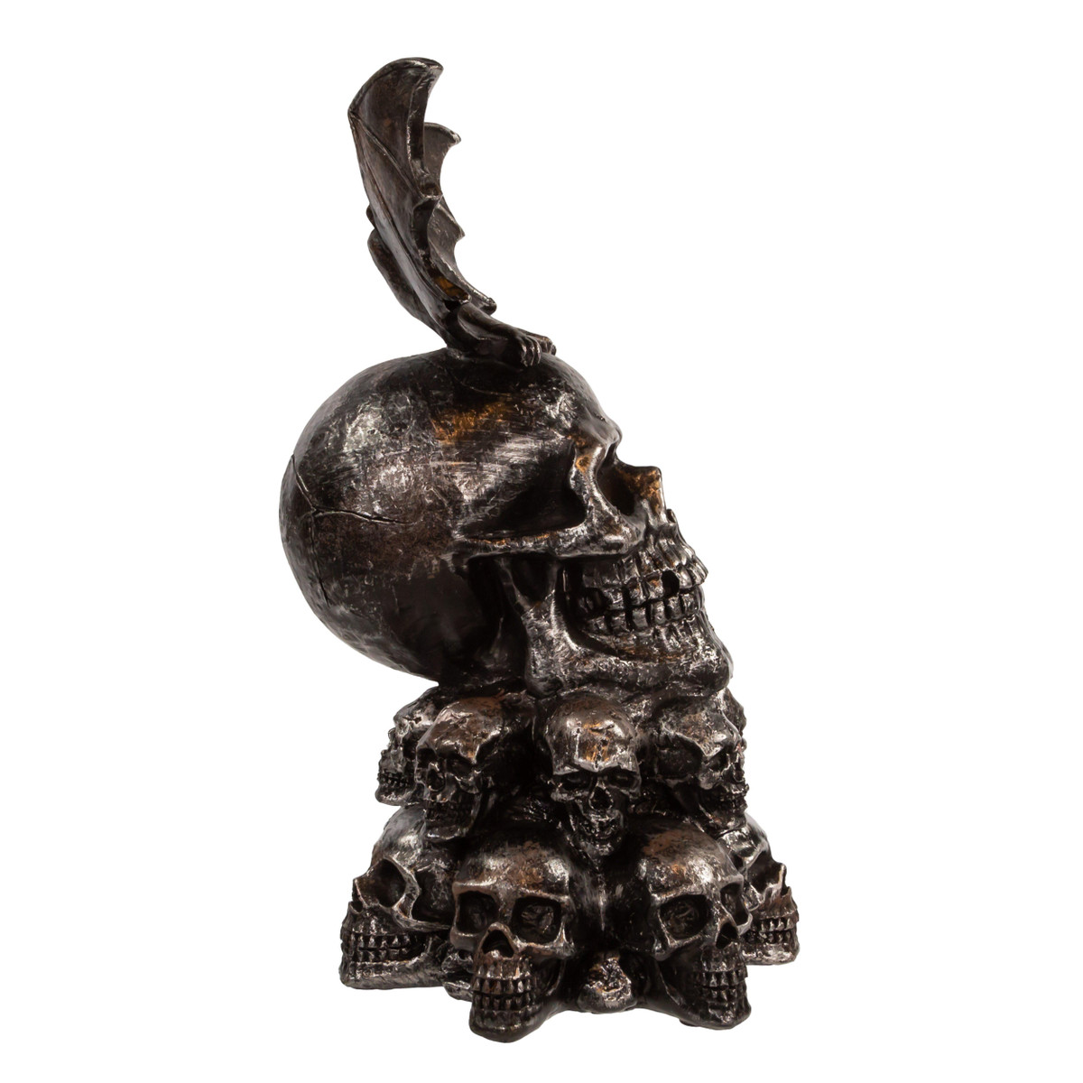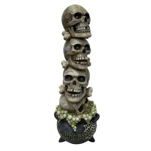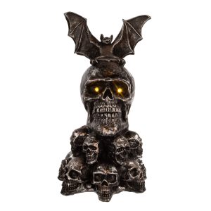 The 11.5 in. Battery-Operated Bat On Skull Table Piece from Kurt Adler is a spooky and stylish addition to your Halloween decorations. This table piece features a bat with its wings spread atop a skull on a two tiered skull base. The piece is battery-operated, so it can be placed anywhere without needing to be near an outlet. It’s perfect for creating a creepy ambiance in your home or office, and it’s ideal as a centerpiece for your Halloween party. Measures 6.25 in. x 6.25 in. x 11.5 in.