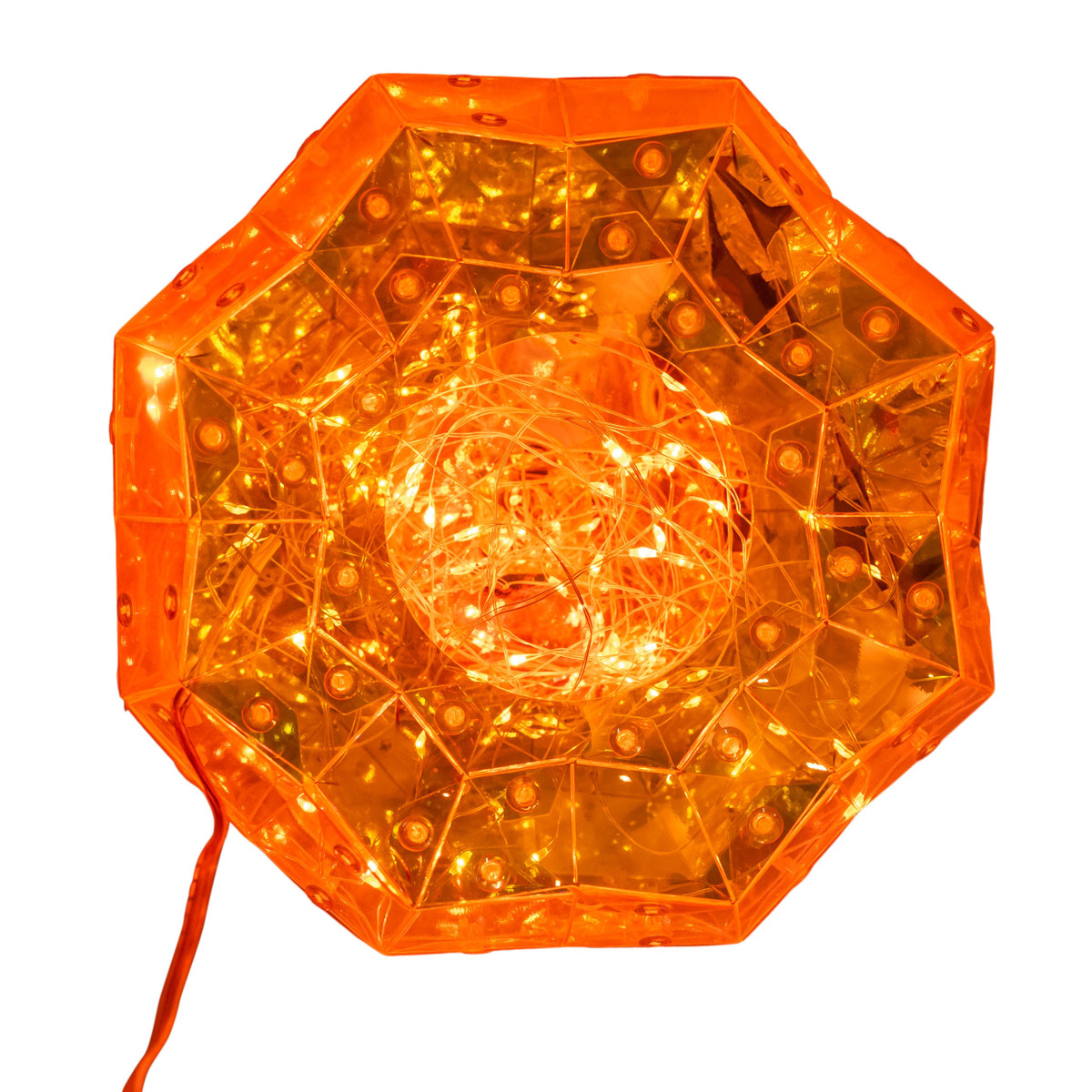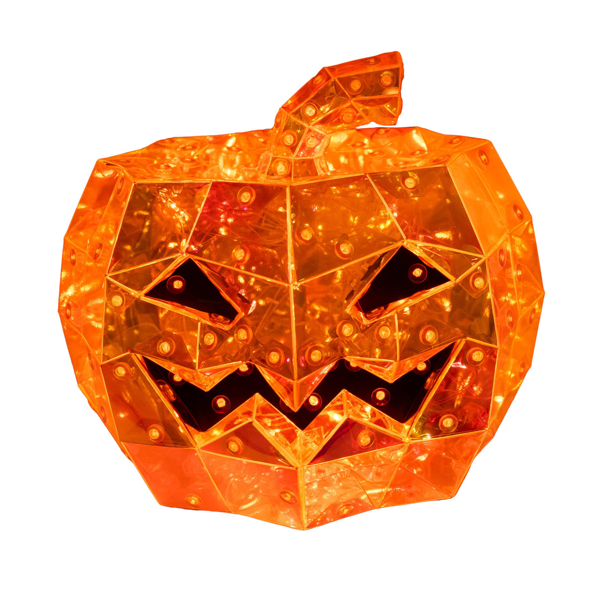 Introducing our 100-Light Orange Micro LED Holographic Jack-O-Lantern, a spooky and eye-catching Halloween decoration that will add a hauntingly fun atmosphere to your festivities. It features a classic Jack-O-Lantern design with a holographic twist. The energy-efficient LED lights emit a bright and eye-catching glow, making your Jack-O-Lantern stand out in the dark. Measures 7.5 in. x 7.5 in. x 6.5 in.