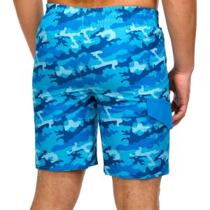 Lightweight, above the knee, comfort mesh liner, stretch, inside drawstring, quick drying. One pocket on right side leg with Velcro closure. Little inside pocket attached to waist and liner.Measurements: Waist 18 Inches, Inseam 7 Inches.