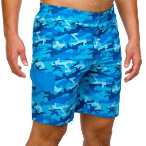 Lightweight, above the knee, comfort mesh liner, stretch, inside drawstring, quick drying. One pocket on right side leg with Velcro closure. Little inside pocket attached to waist and liner.Measurements: Waist 18 Inches, Inseam 7 Inches.