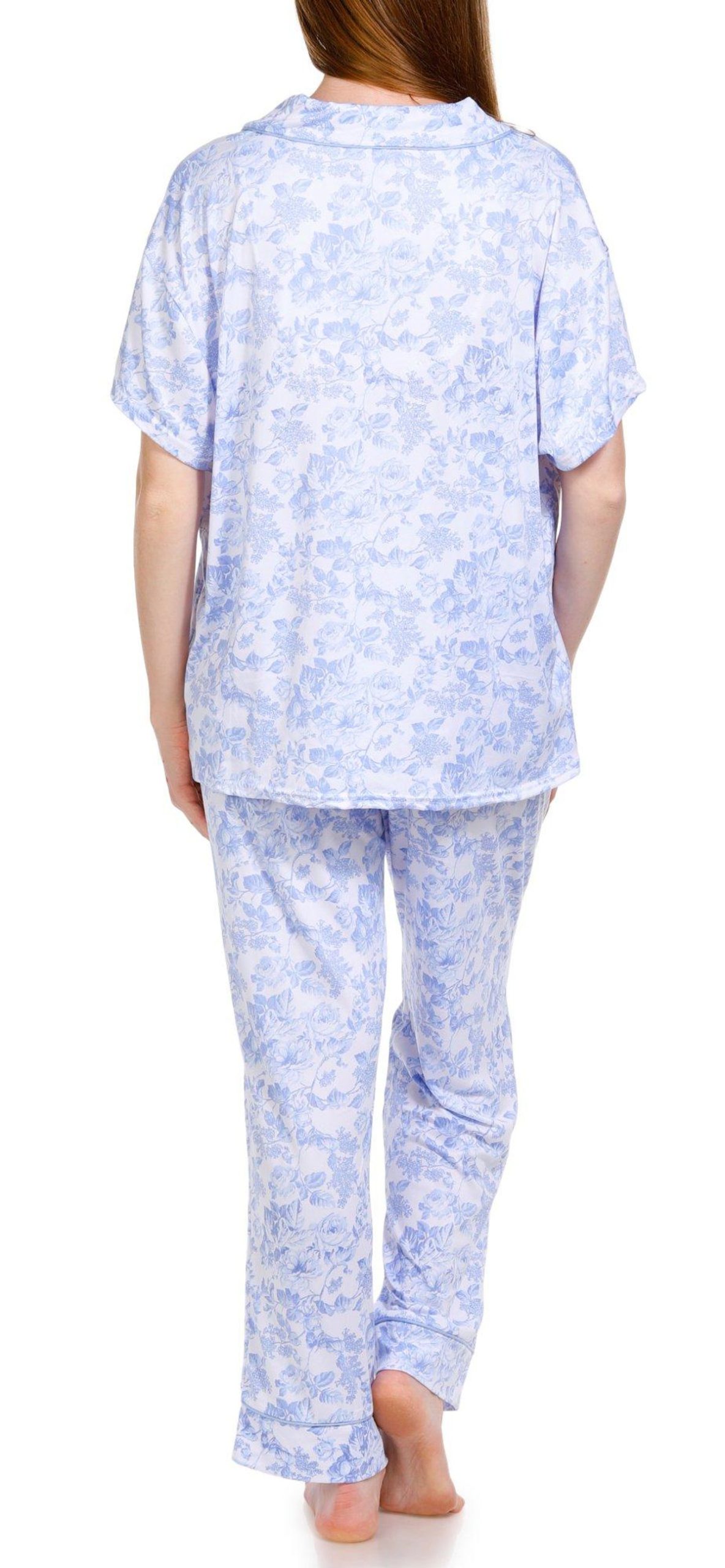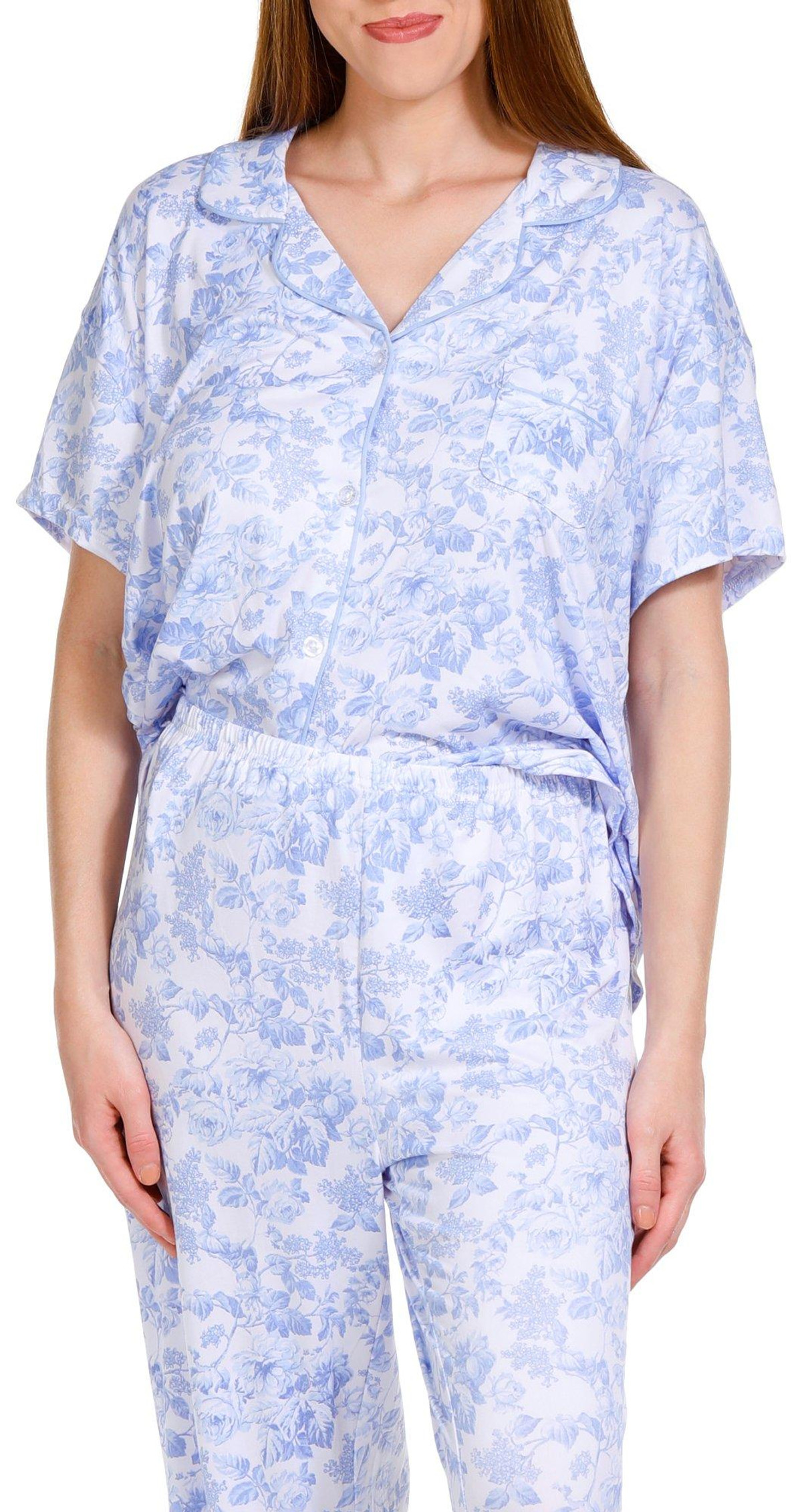 This 2-Piece Sleepwear Set is a perfect blend of comfort and style. This set includes a buttoned short sleeve shirt and matching pants, both featuring a charming print pattern. Ideal for a restful night’s sleep or lounging at home, this sleepwear set offers a relaxed fit and a stylish design. Fabrication is 90% polyester, 10% spandex.