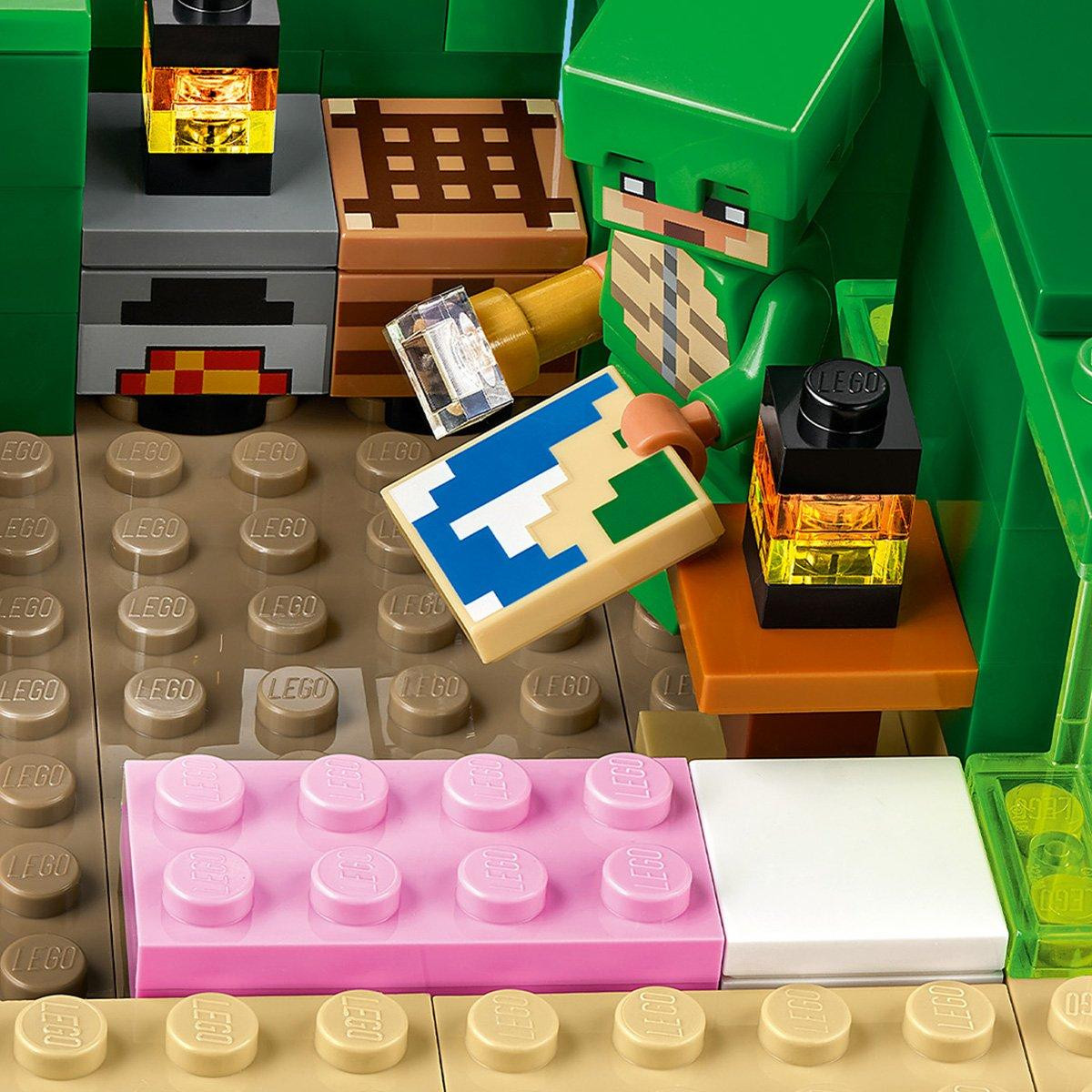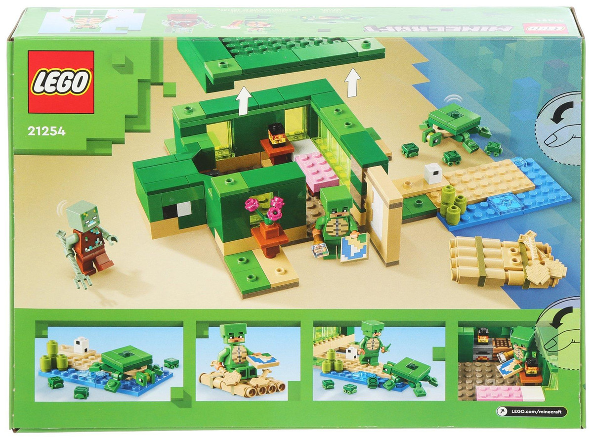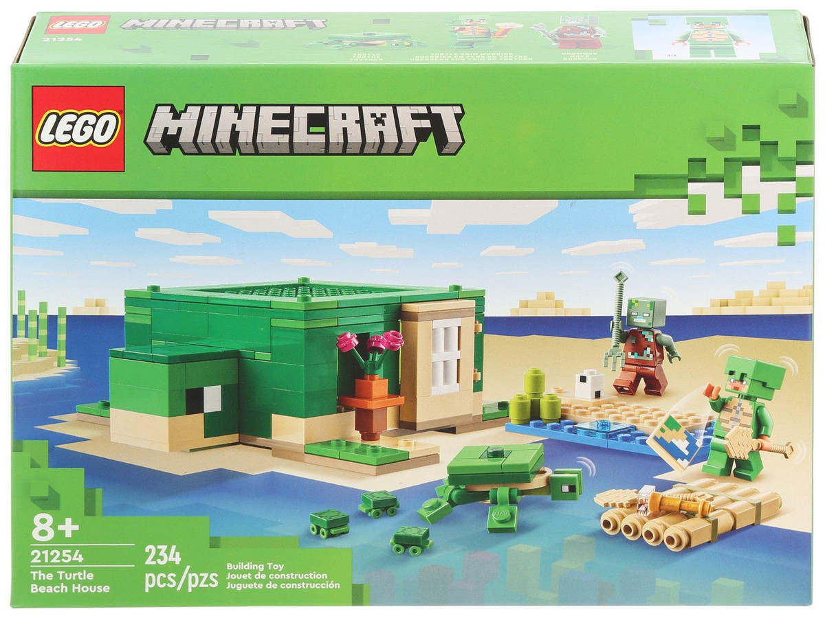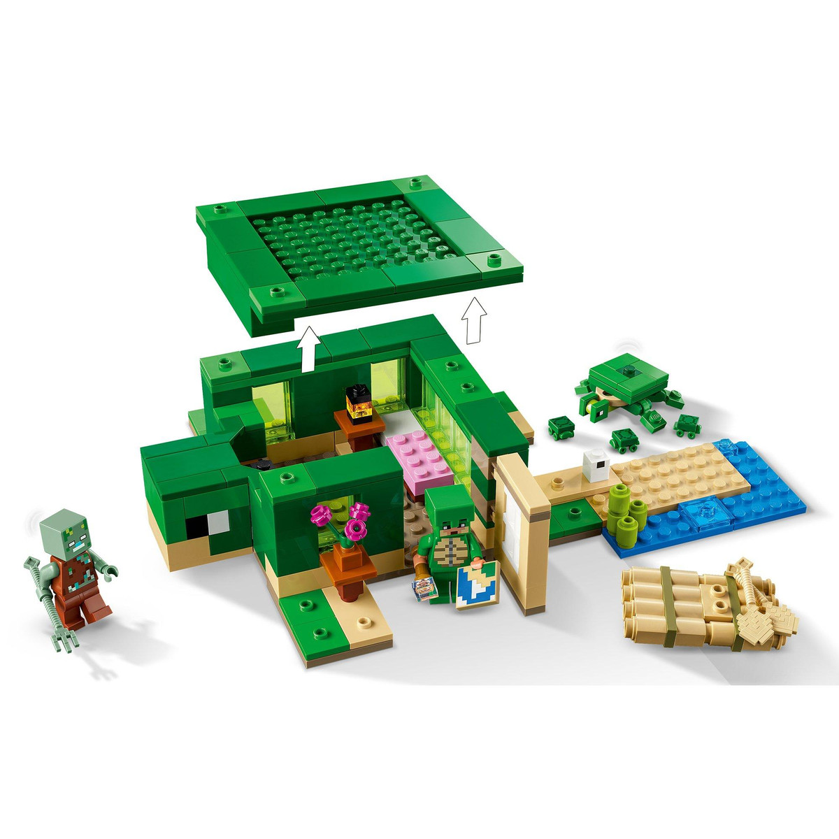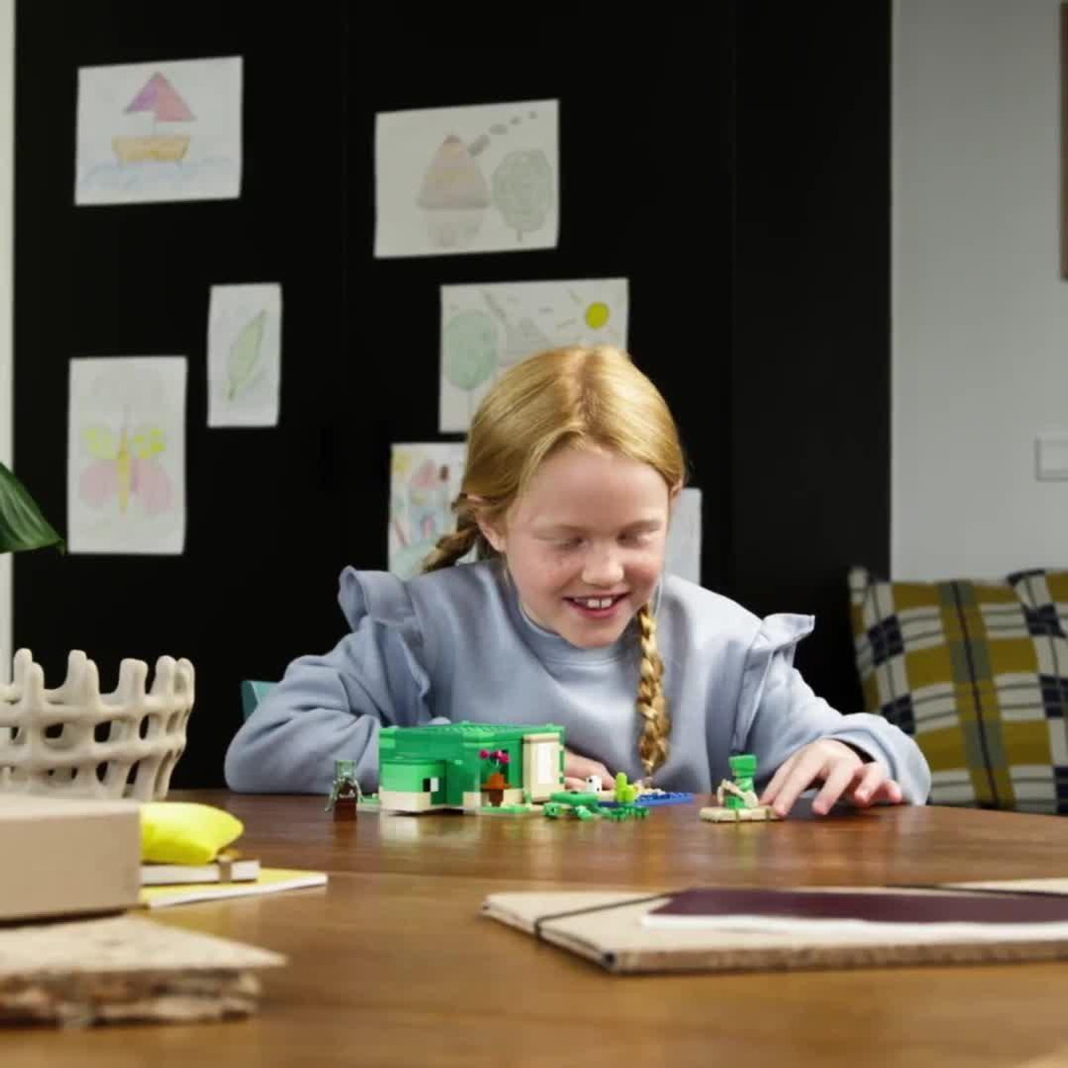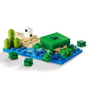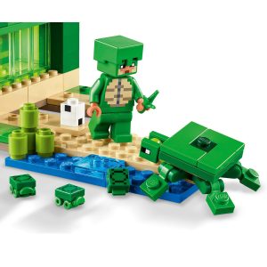 This model house shaped like a Minecraft turtle is packed inside and out with Minecraft action and animal fun. With 3 iconic characters and a cool structure to build, the LEGO® Minecraft The Turtle Beach House set is a great gift idea for 8 year old kids and Minecraft fans. Players build a turtle-shaped Minecraft house with windows, lanterns, a door, bed, table, crafting table and a furnace. A lift-off roof gives easy access to the interior.