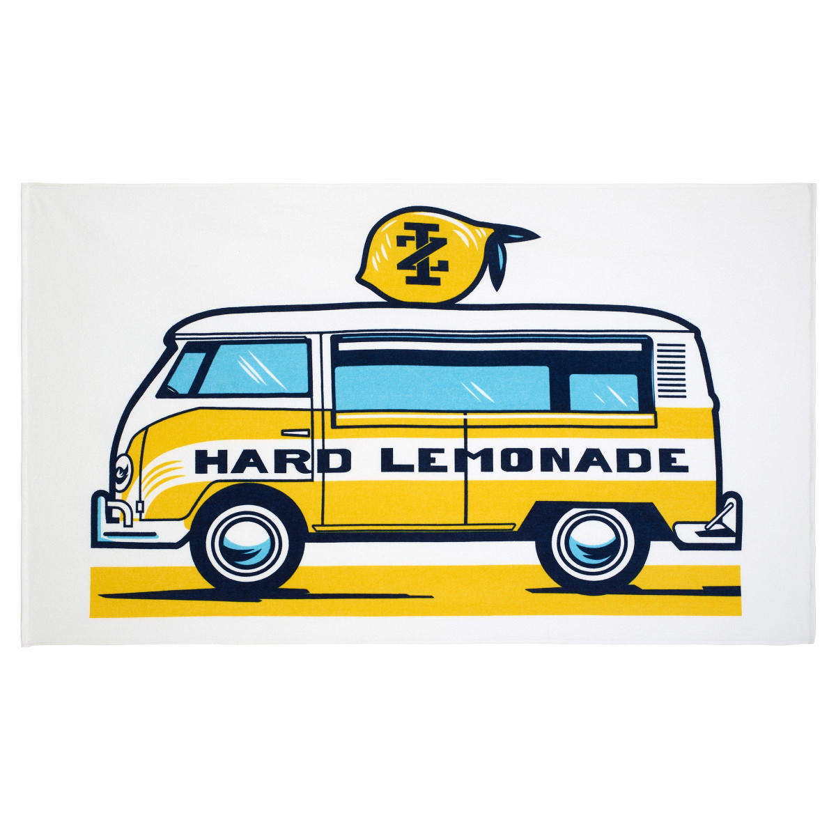The Izod Lemonade Truck Beach Towel features a yellow vintage VW bus with HARD LEMONADE on its side and a lemon on top with the Izod IZ logo. Printed on an oversized white ground 100% cotton sheared velour face and terry back, 40 x 70. For the VW lover in all of us!!