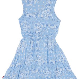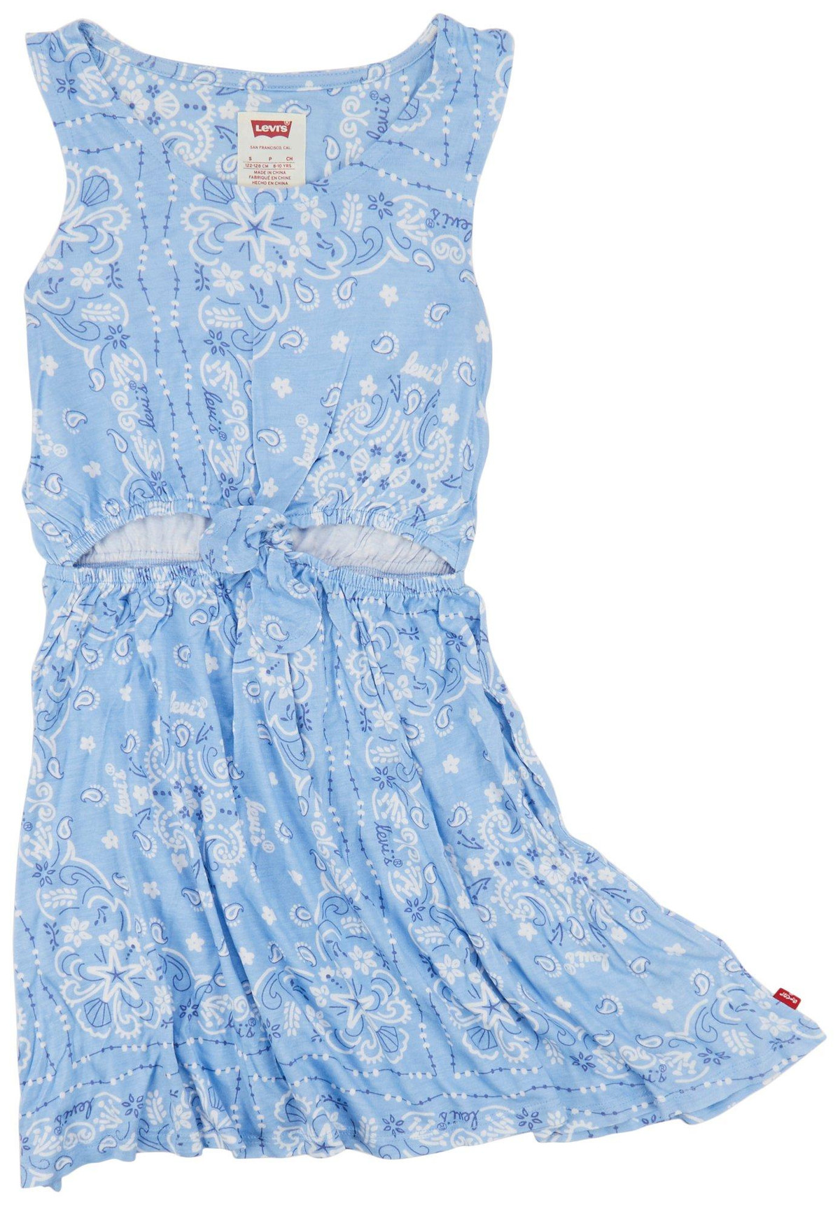 A cute pick for her next occasion, this blue floral sleeveless dress is accented by cutout along the waist.